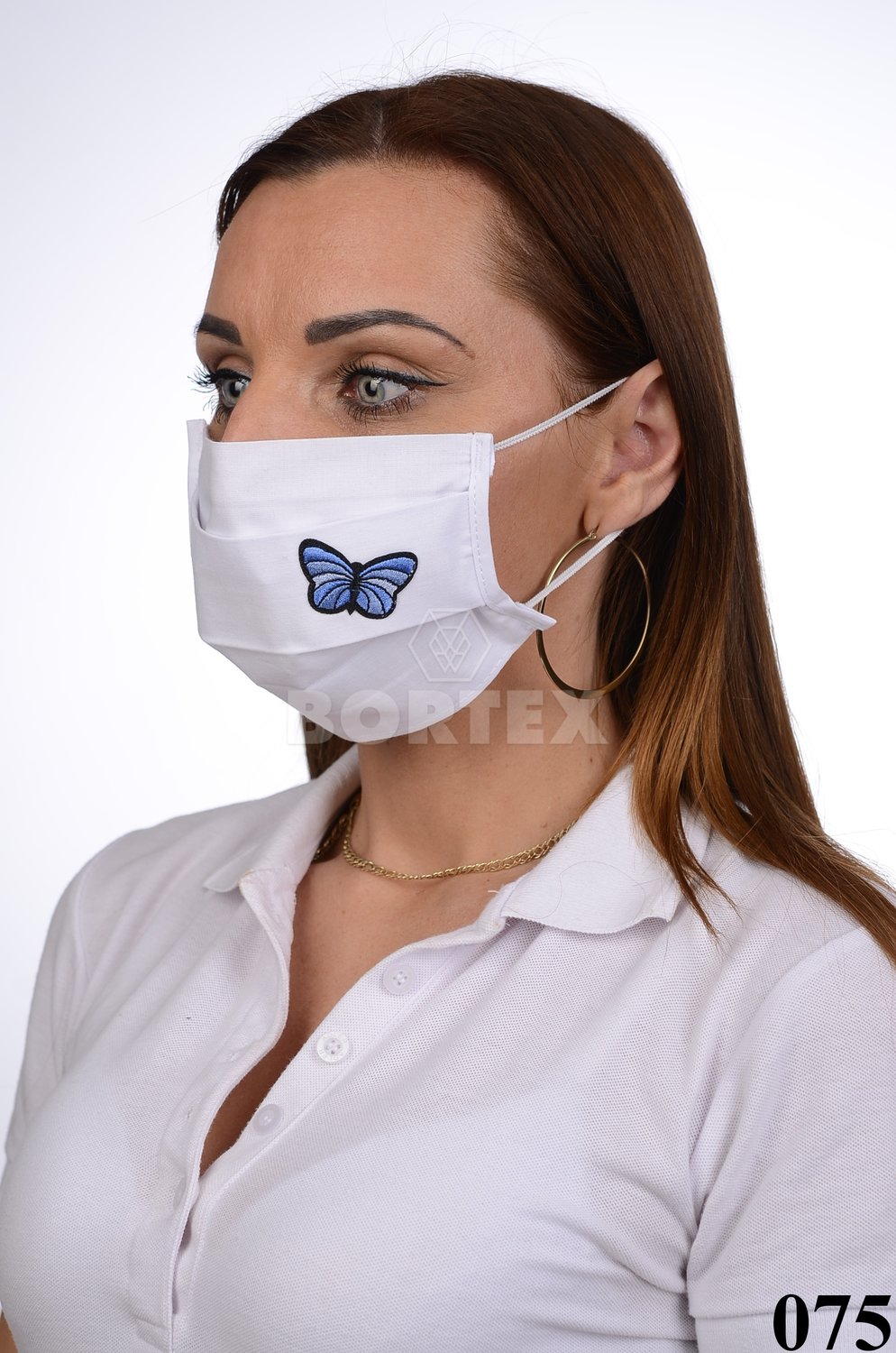 Bavlnené rúško na tvár B03-BORT (dvojvrstvové-100% bavlna) motív motýľ (biele)