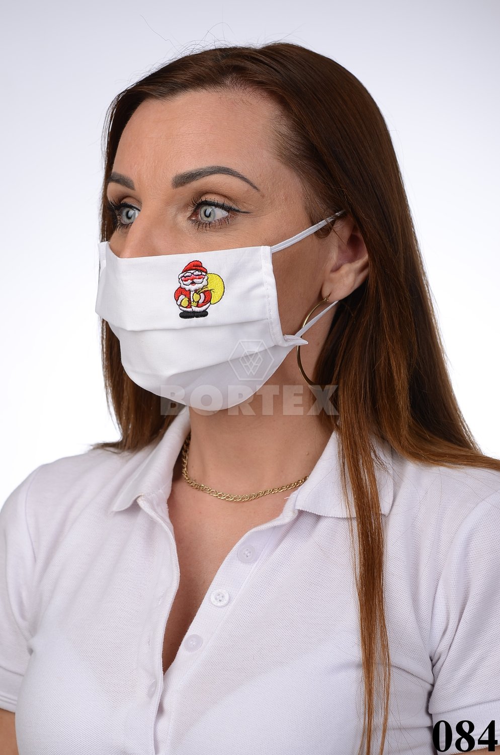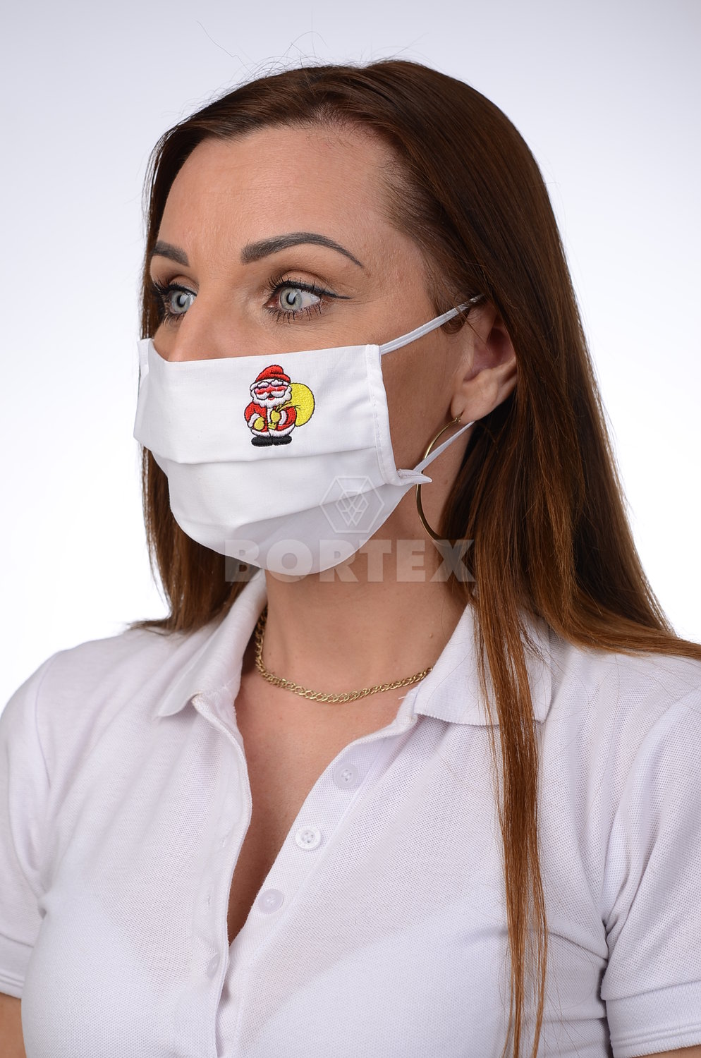 Bavlnené rúško na tvár B03-BORT (dvojvrstvové-100% bavlna) motív Mikuláš (biele)