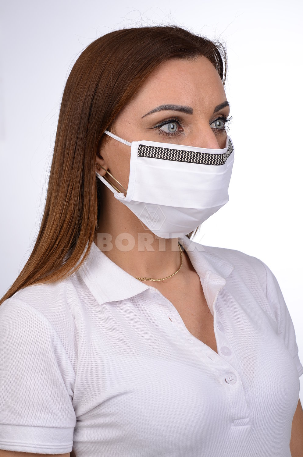 Bavlnené rúško na tvár B03-BORT.slovenský výrobok (dvojvrstvové-100% bavlna) - ozdobné rúško motív vlnky (biele) 060