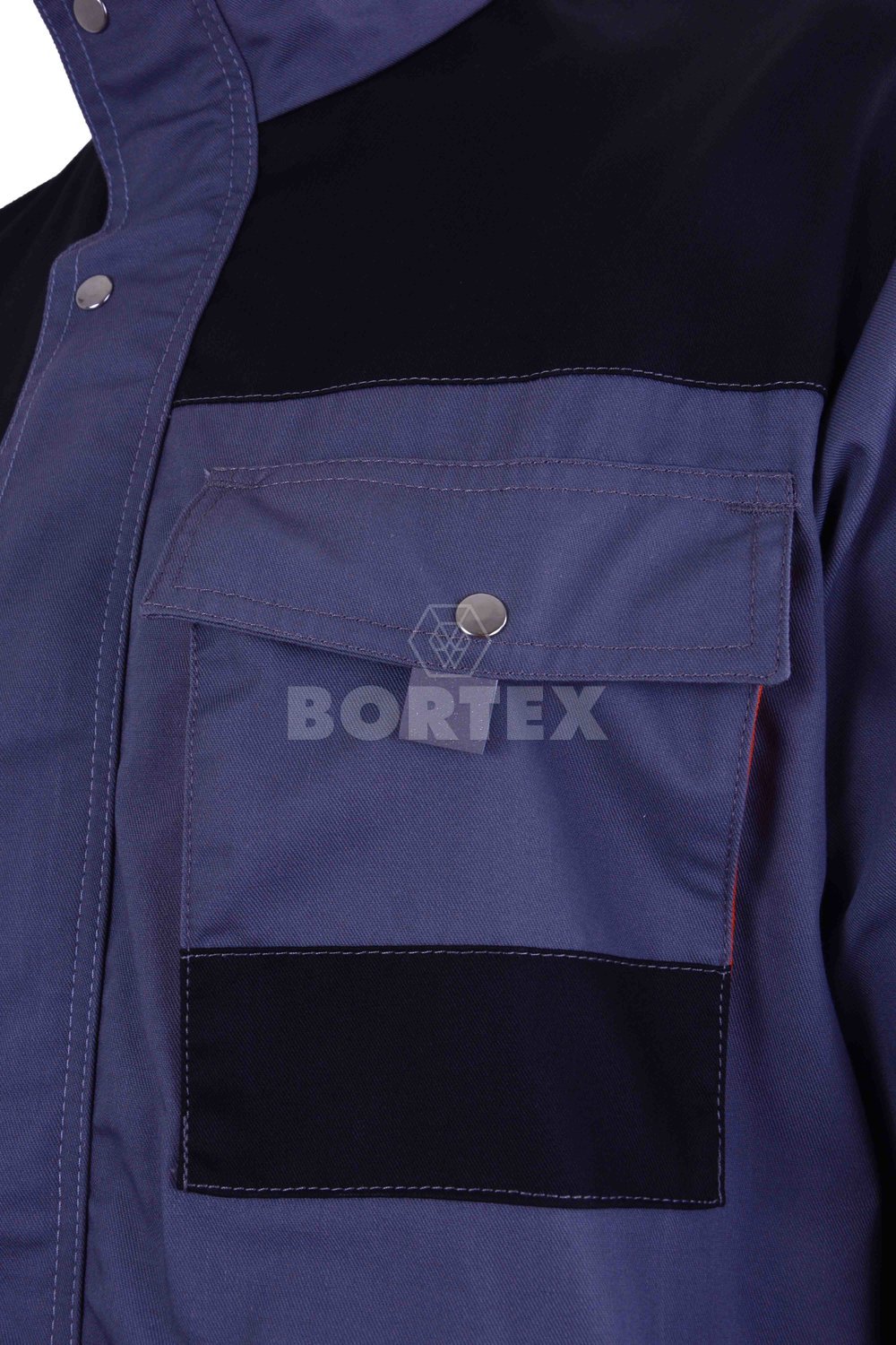 Pracovná blúza MAJSTER je s dlhým rukávom, na ľakťoch má farebné spevnenia, spodok rukáva je ukončený úpletom. Zapínanie pracovnej blúzy je  zipsové s prekrytím až do stojačika. Prekrytie zapnuté auto - gomíkom.