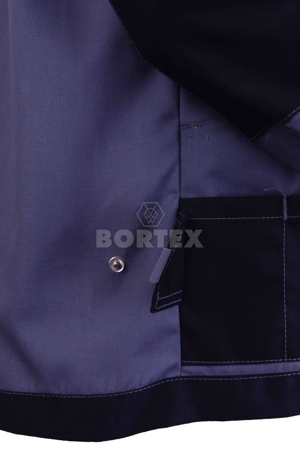 Pracovná blúza MAJSTER je voľného strihu s farebným sedlom, v priekrčníku má všitý stojačik. Spodok bundy je ukončený páscom. Predné diely majú dve náprsné vrecká a to na pravej strane dve malé vrecká - jedno harmonikové s príklopkou a zapínaním na gombík a jedno predelené vrecko. Na ľavej strane má pracovná blúza jedno nakladané vrecko, na spodku spevnené farebne s príklopkou a zapínaním na gombík, dole dve harmonikové vrecká, tiež na spodku spevnené farebne. Zadný diel je s farebným sedlom, na spodku v bočnom šve nad patentom má všité pätky so zapínaním na gombík.