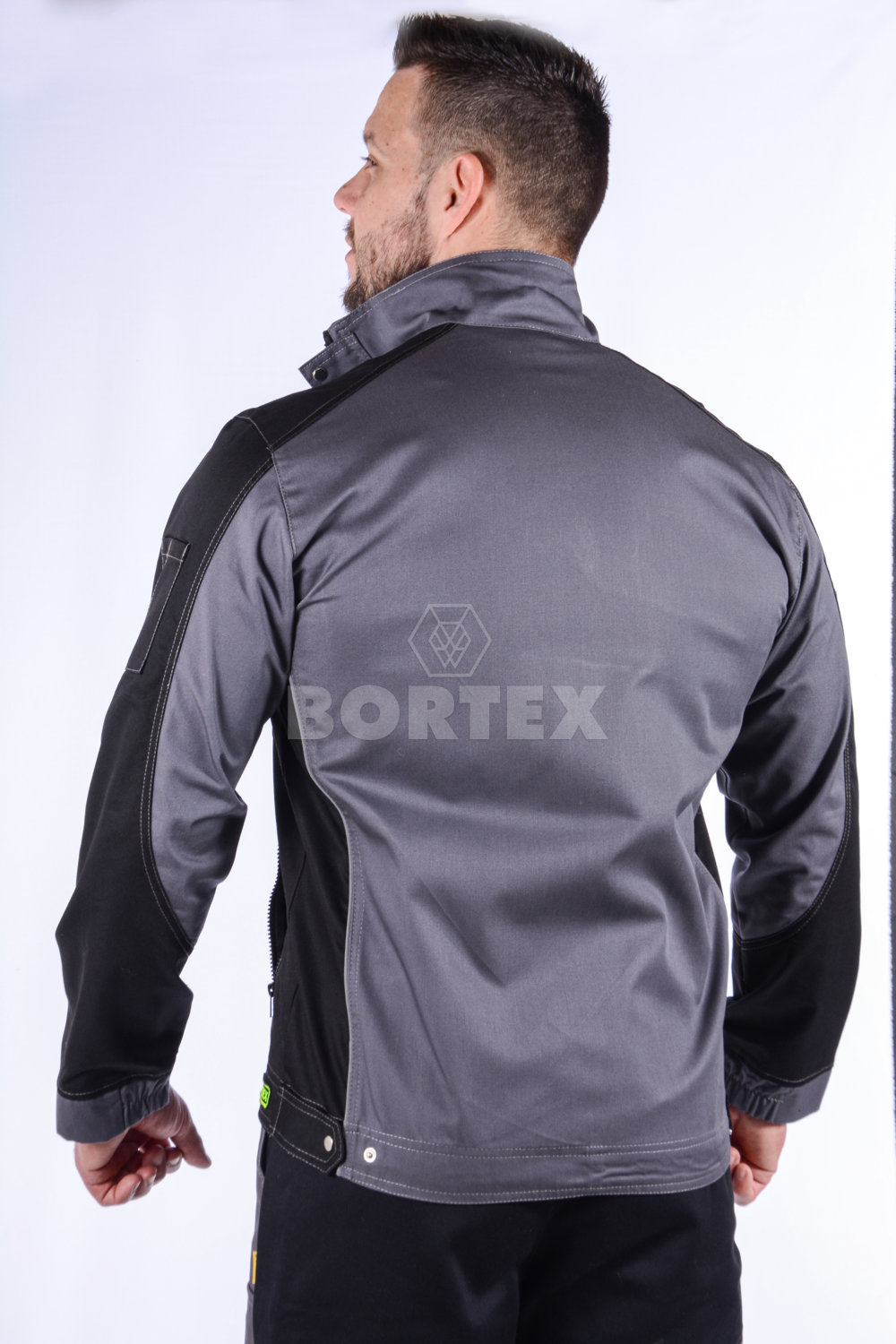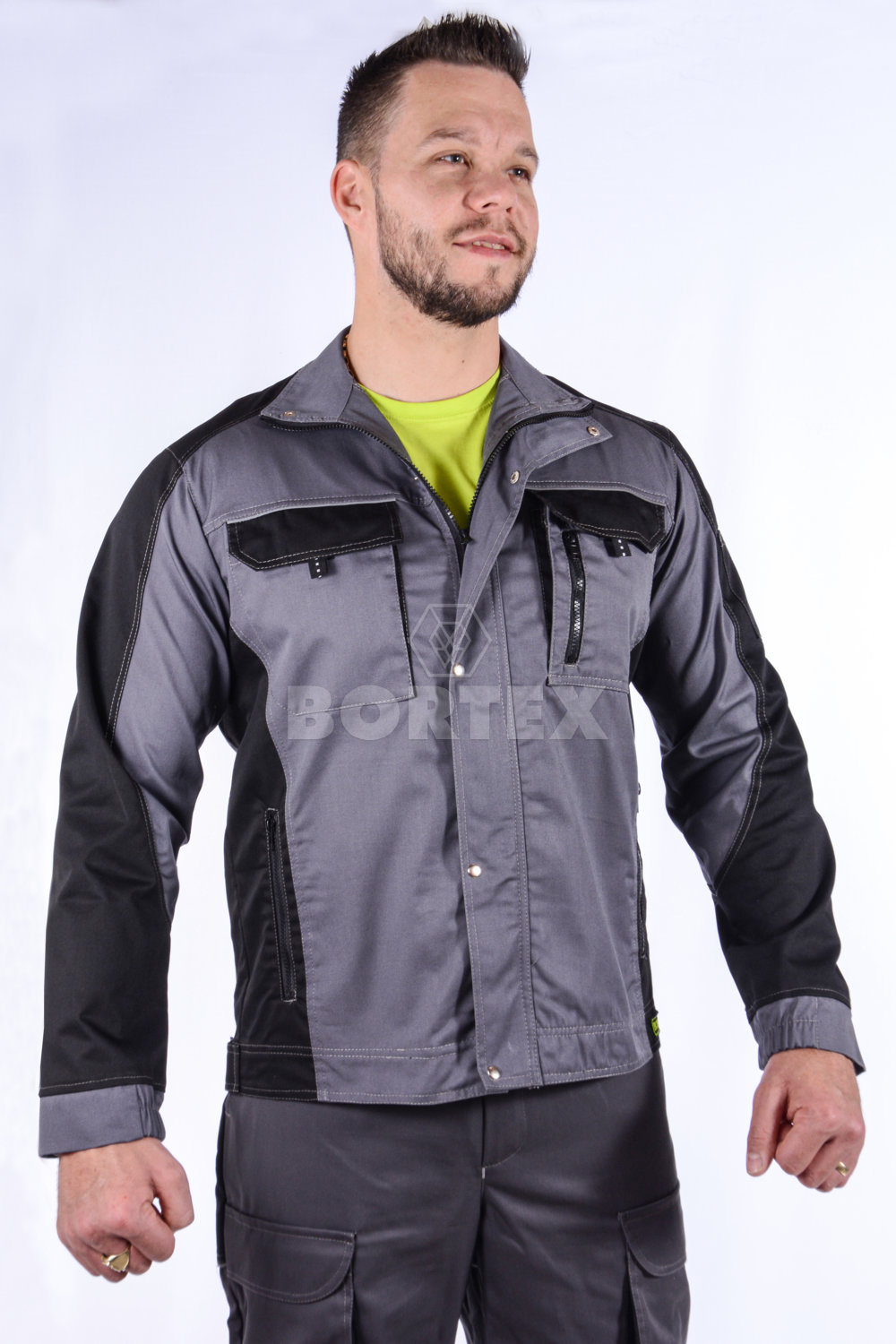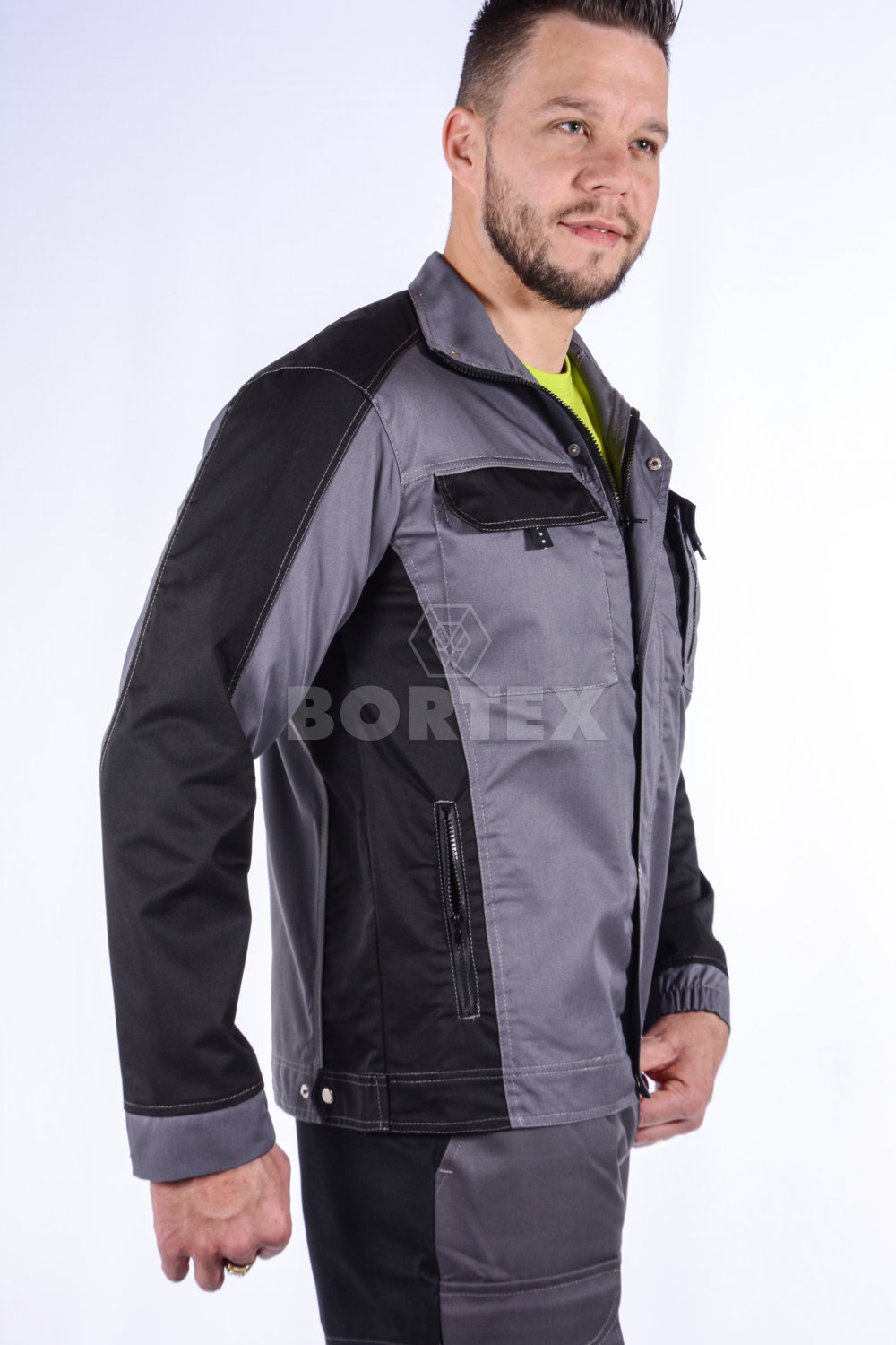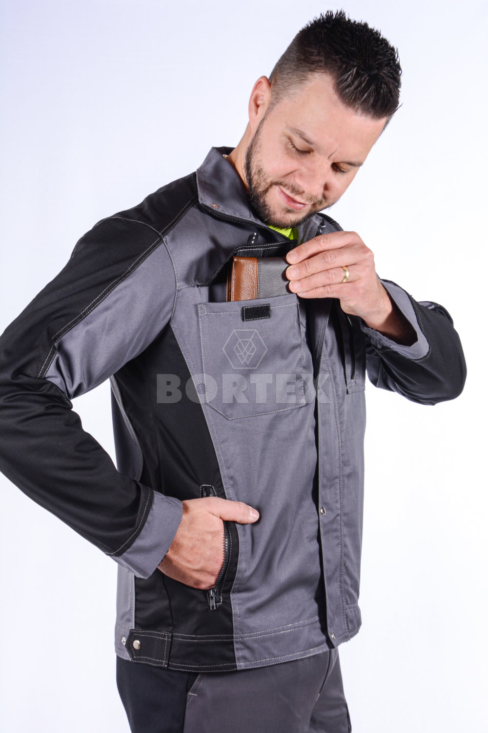 Pracovná blúza je voľnejšie strihu so zapínaním na zips s príklopkou na auto-gombíky.