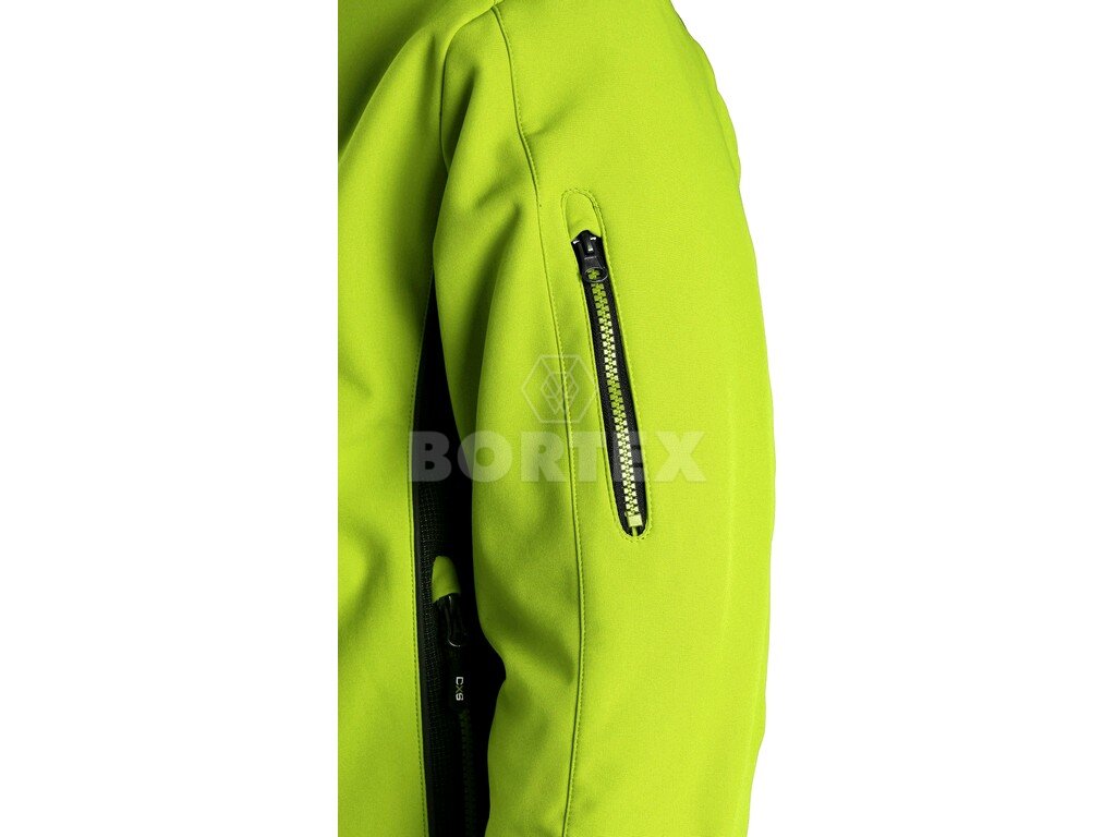 Pánska softshellová nepremokavá bunda so zapínaním na zips a odopínateľnou kapucňou.
