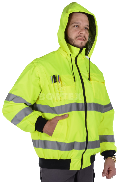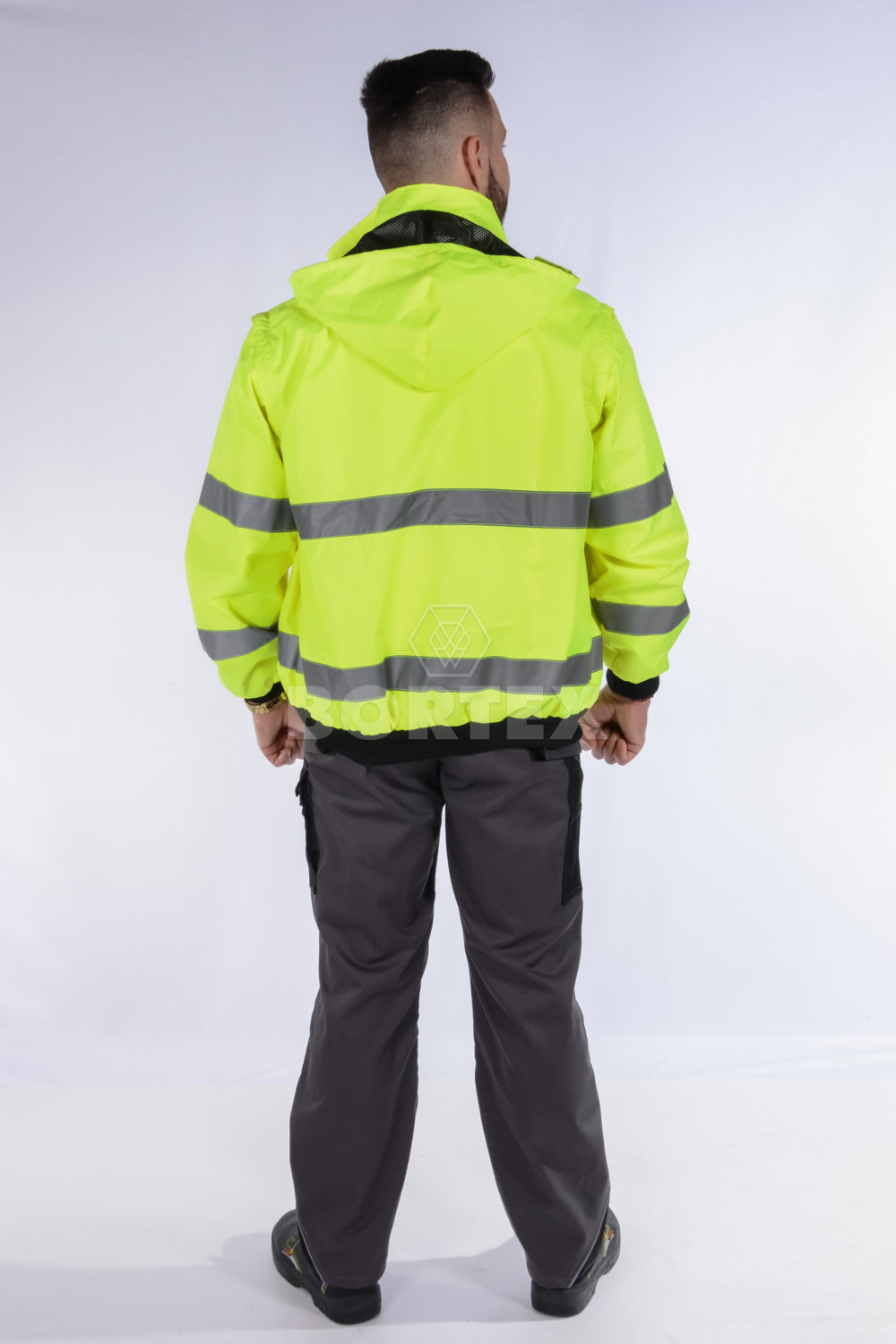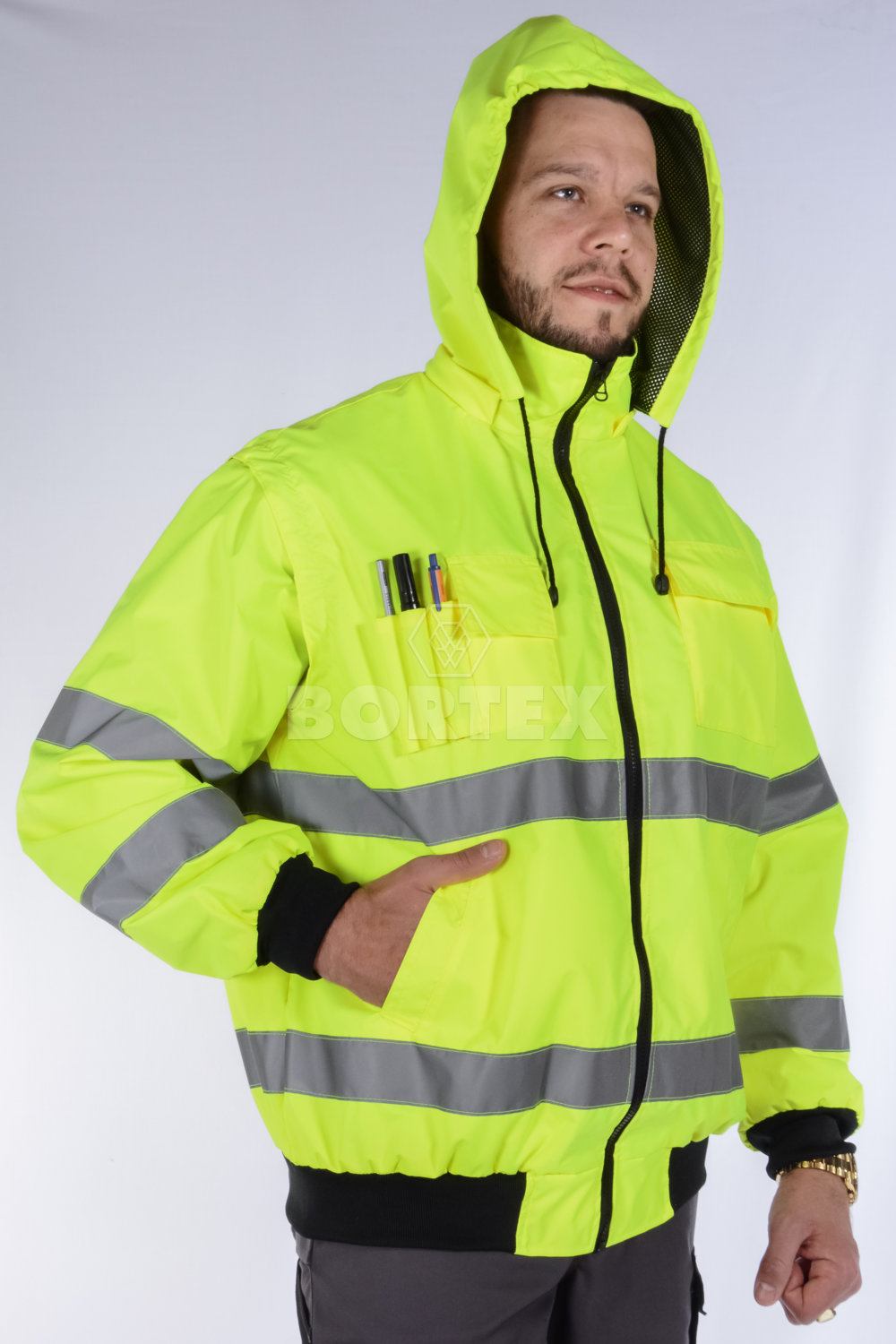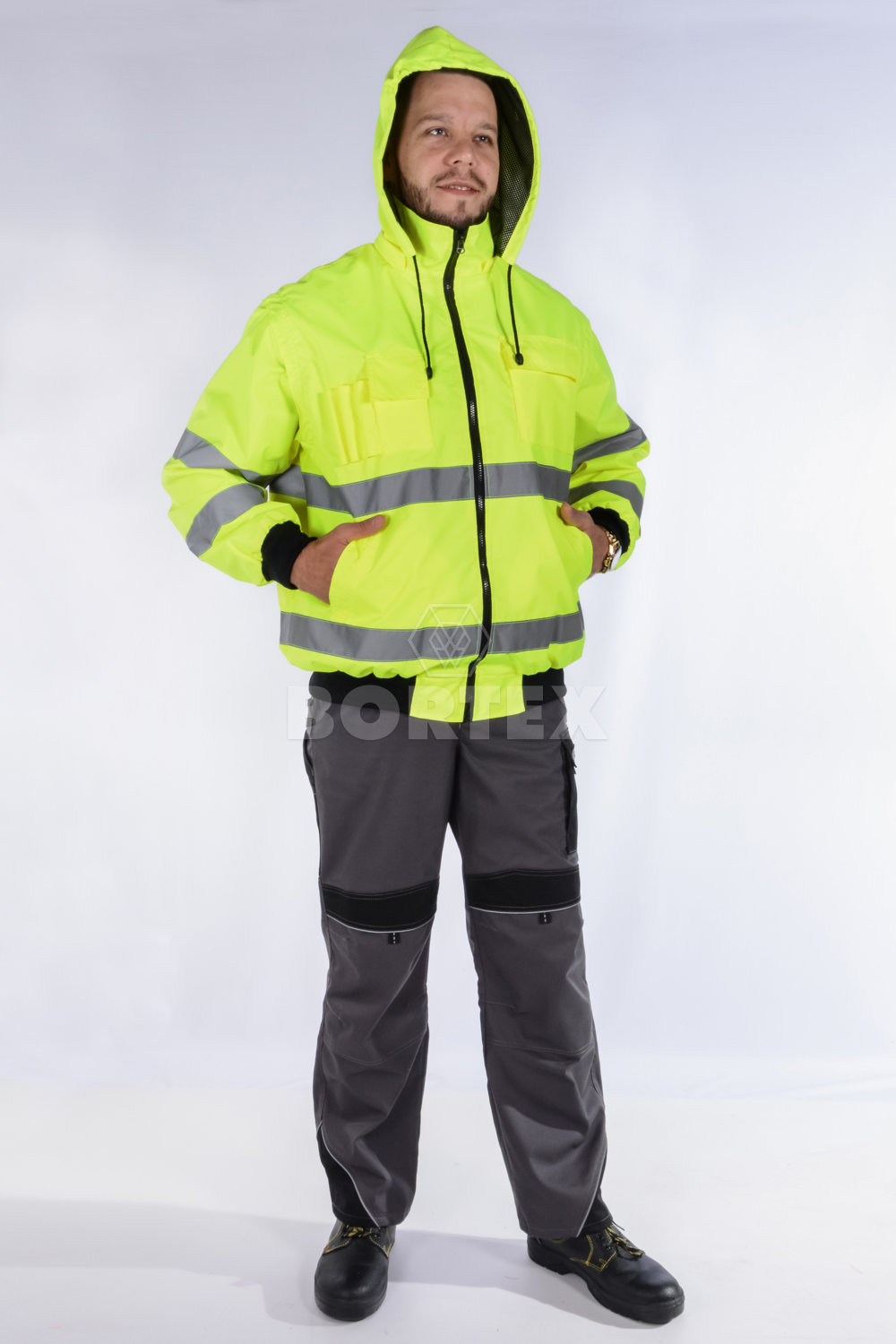 Pracovná bunda nájde svoje využitie na prácu pri cestách, koľajniciach, prípadne iných komunikáciách, pretože zviditeľňuje nositeľa za všetkých svetelných podmienok, na letiskách, či priemyselných prevádzkach, kde dochádza k preprave materiálov, prípadne manipulácií s výrobnými prostriedkami.