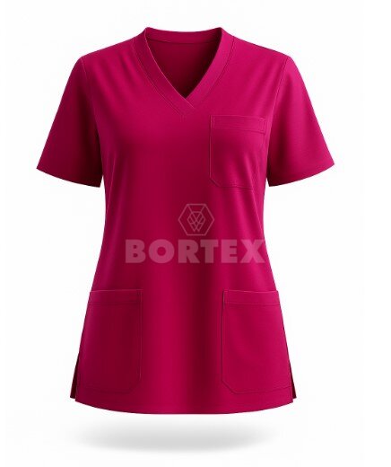 Súčasťou chirurgickej košele je V-výstrih, ktorý ponúka moderný vzhľad. Obsahuje priestranné vrecká - jedno náprsné vrecko, dve spodné vrecká. Bočné rozparky pre maximálnu voľnosť pri sedení či ohýbaní. Krátke rukávy ideálne pre dynamickú prácu.