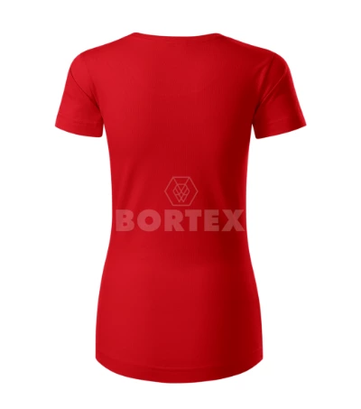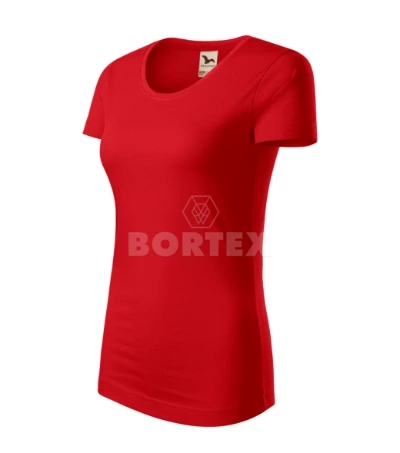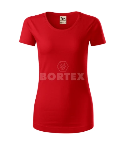 Dámske tričko s krátkym rukávom, okrúhlym výstrihom, certifikovaná organická bavlna, zľahka vypasovaný strih s bočnými švami.