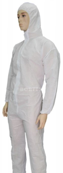Jednorázový oblek s kapucňou, vyrobený zo špeciálneho materiálu - 100% polypropylén.