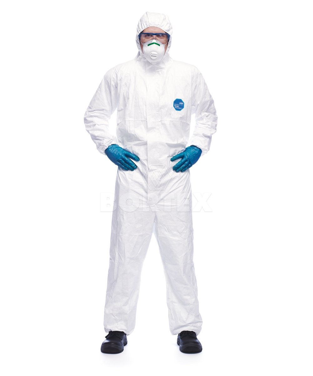 Jednorázový antistatický overl TYVEK Classic s kapucňou má elastický pás a manžety na rukávov a členkoch. Zapínanie na zips kryté légou.