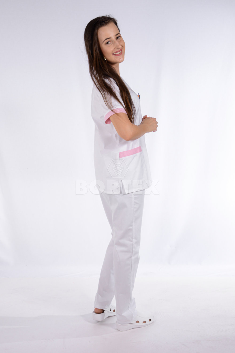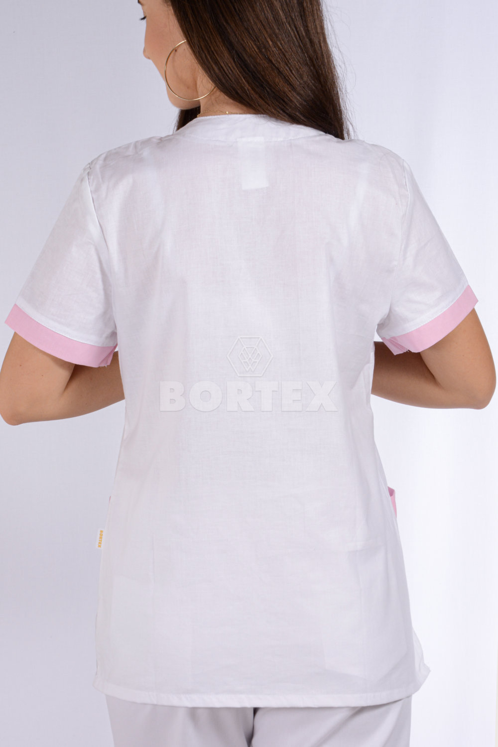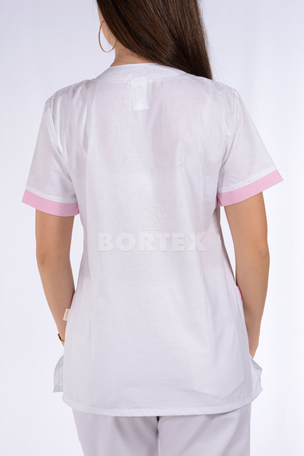 Košeľa chirurgická - dámska - biela s ružovým  lemom
