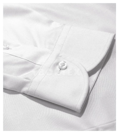 Golier košele je dvojdielny so zosilnenými zakončeniami. Predné okraje sú začistené légou. Košeľa má dlhé rukávy s okrúhlou manžetou a zapínaním na 2 gombíky. Gombíky na košeli sú perleťové (2 náhradné gombíky sa dodávajú spolu s košeľou).