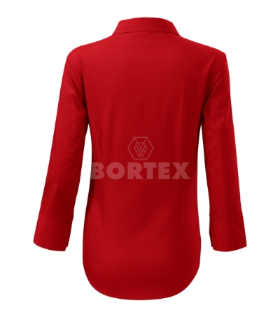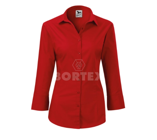 Kvalitná dámska košeľa s 3/4 rukávom z veľmi jemného a príjemného materiálu. Pre atraktívnejší vzhľad a zvýraznenie dámskej siluety je košeľa tvarovaná pásovými a prsnými záševkami. Súčasťou košele je dvojdielny košeľový golier, predné kraje sú začistené légou, dolný okraj je tvarovaný. Dolné kraje rukávov sú všité do vyhrňovacej manžety s ozdobným rozparkom. Zapínanie je na gombíky s jedným náhradným gombíkom vo farbe materiálu. Košeľa je vhodná na potlač. Gramáž 125 g/m2.
