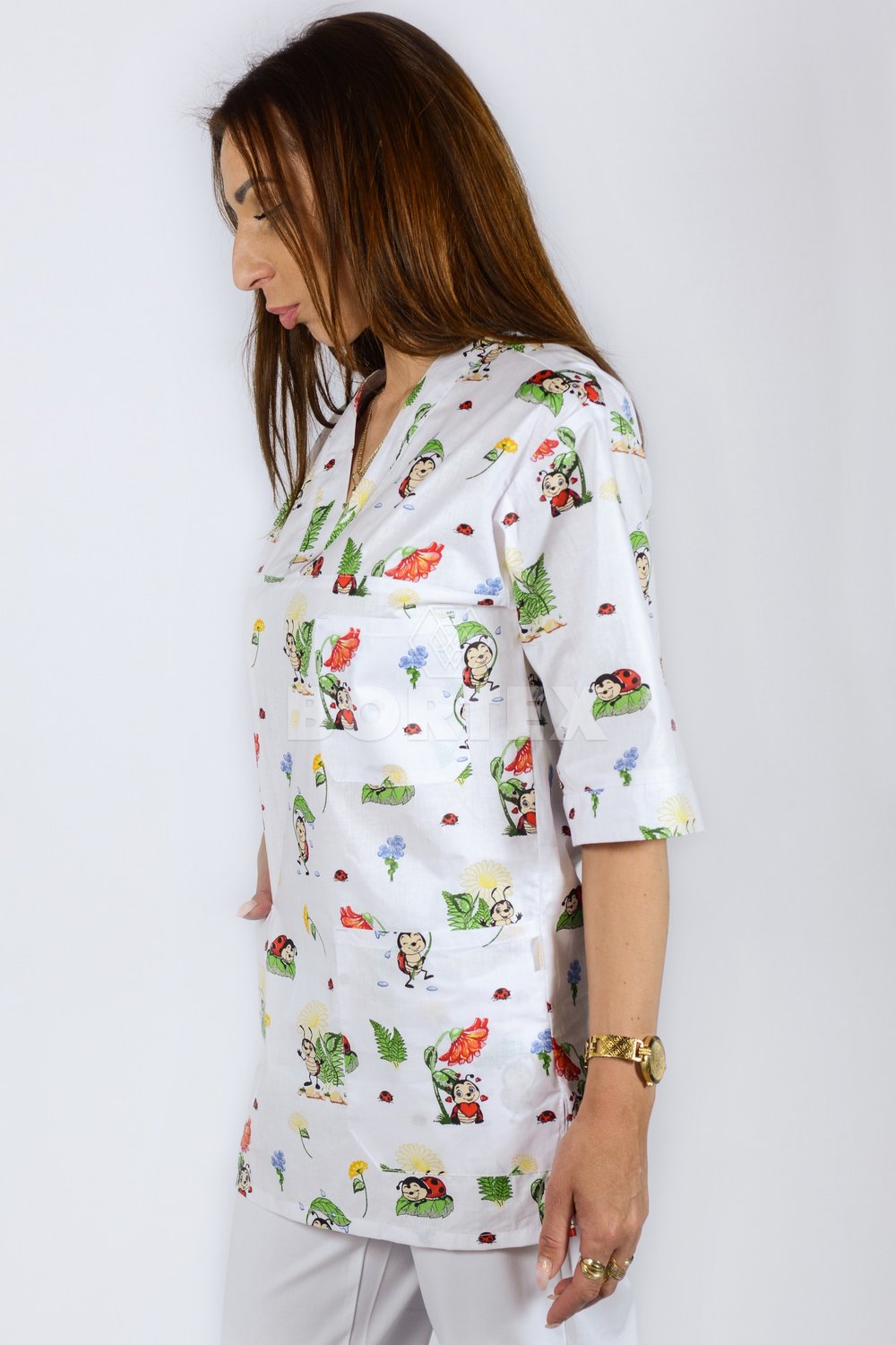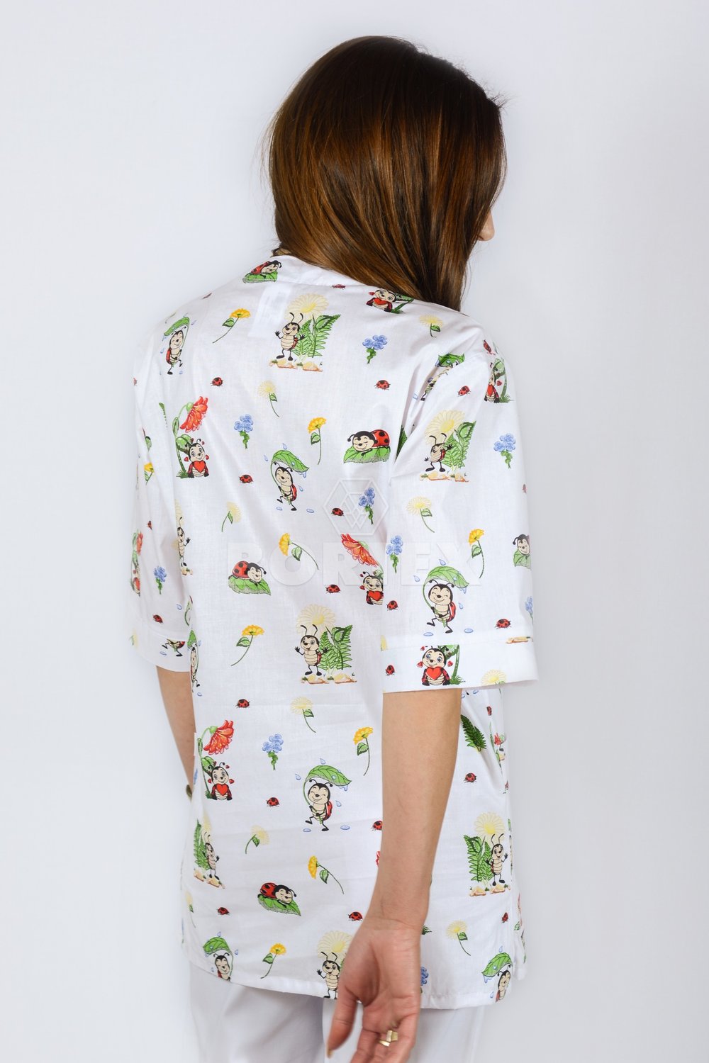 Košeľa dámska zdravotná EVA - vzor lienky v bielej farbe
