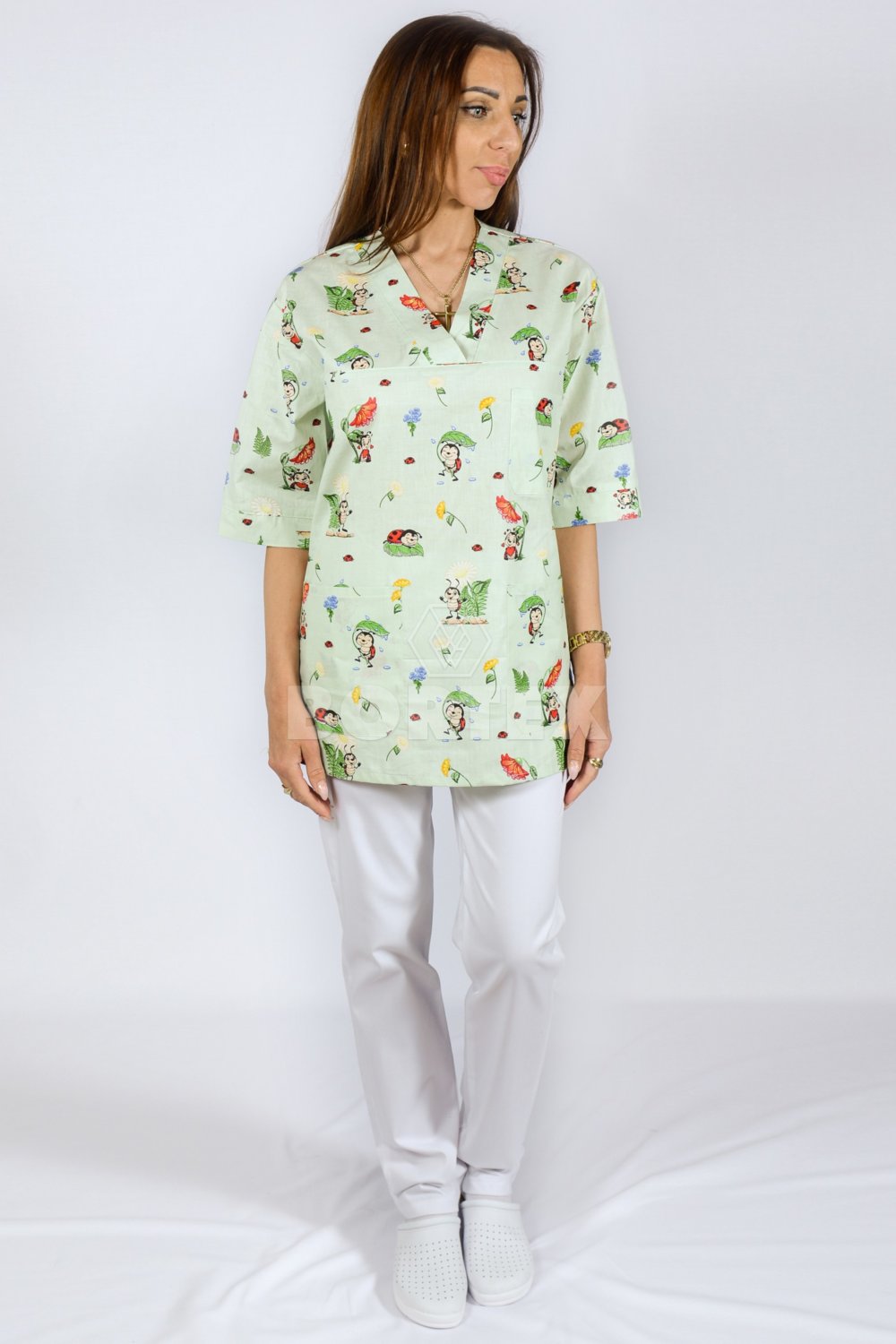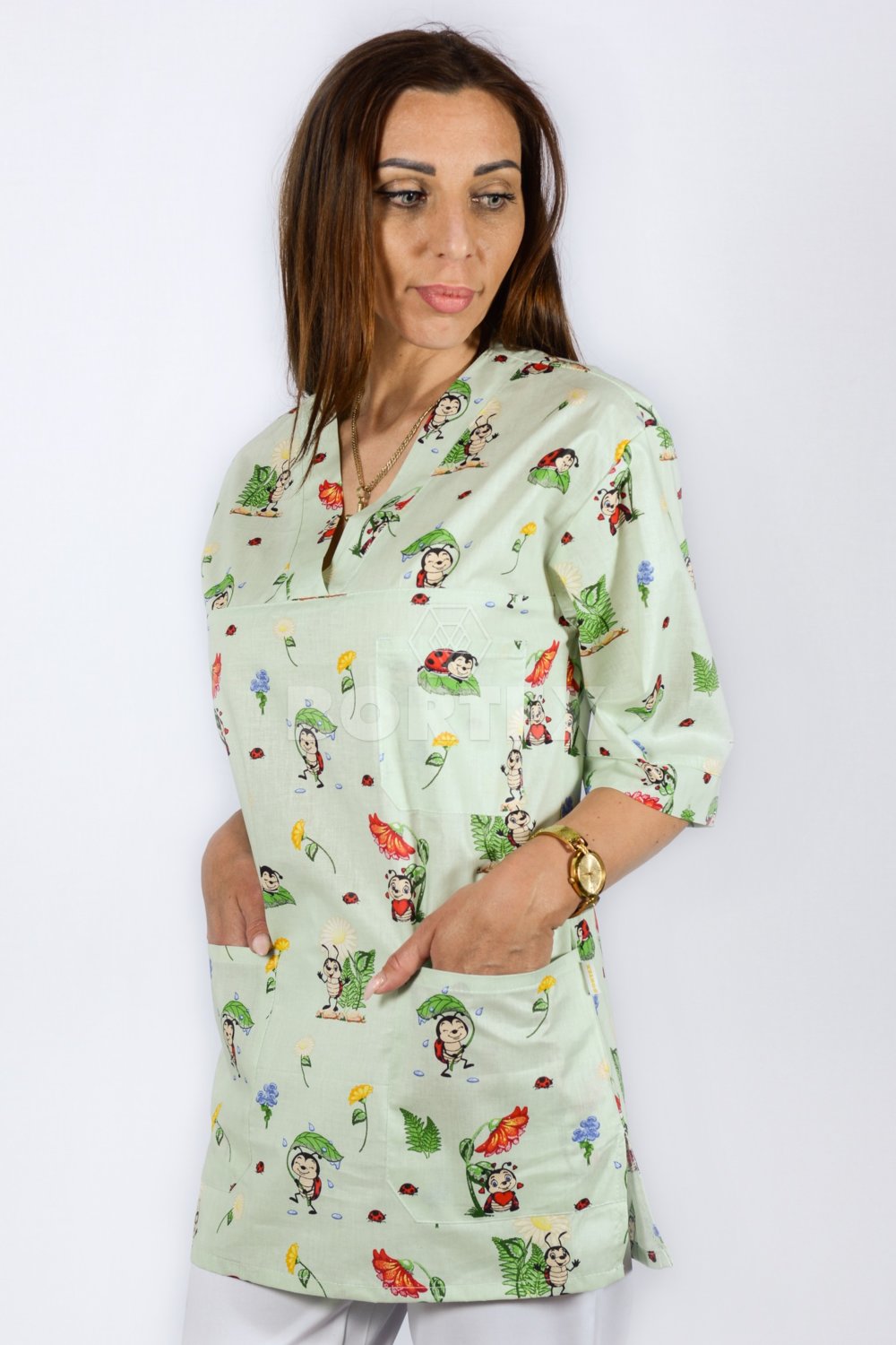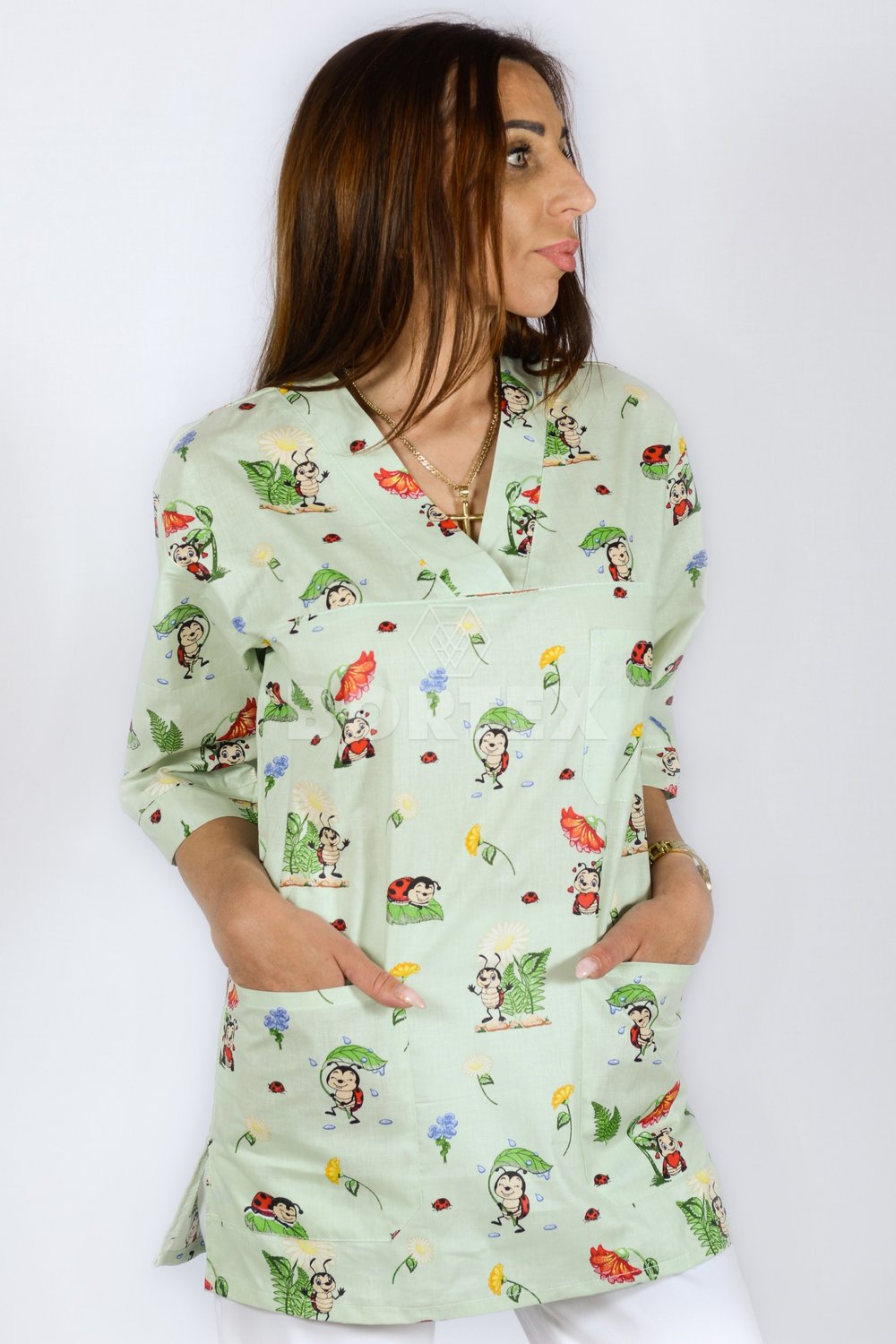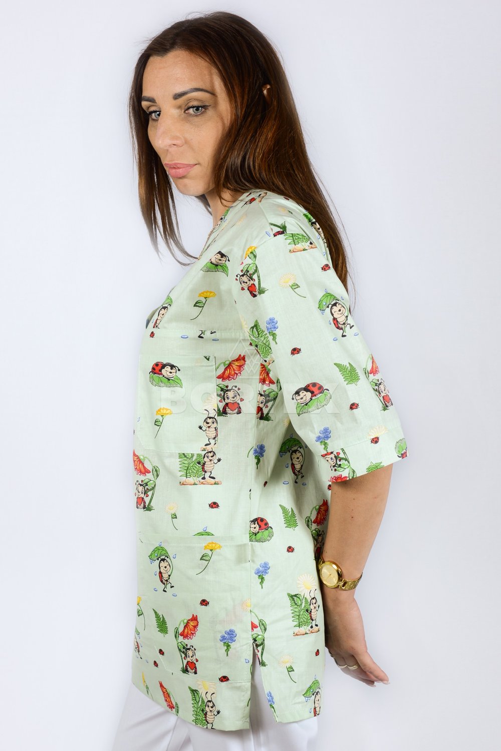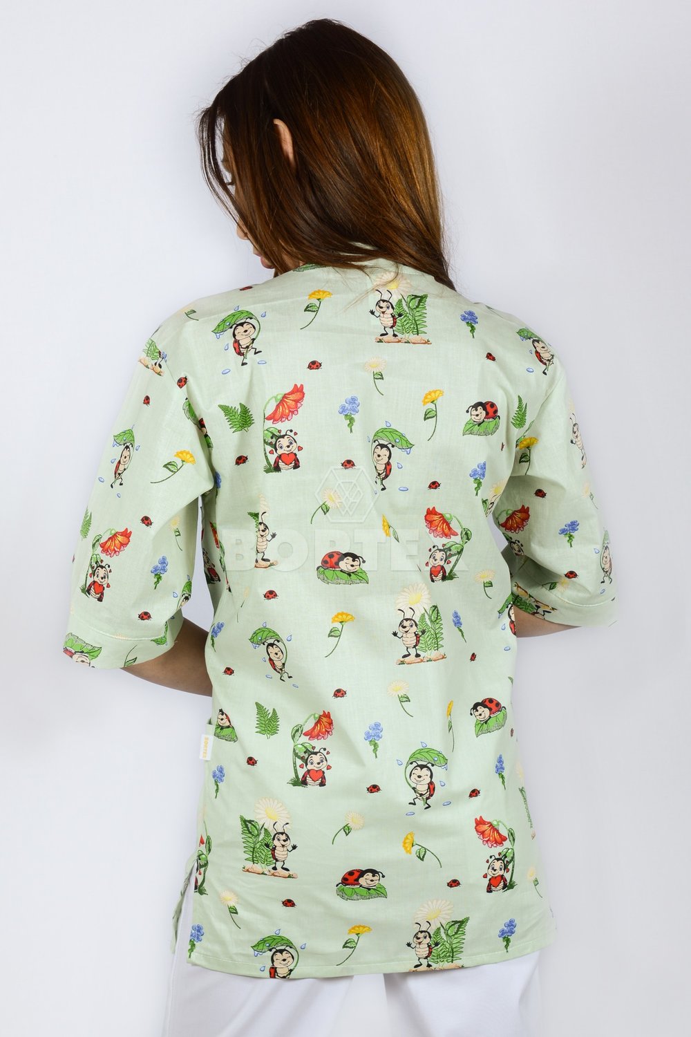 Košeľa dámska zdravotná EVA - vzor lienky v zelenej farbe