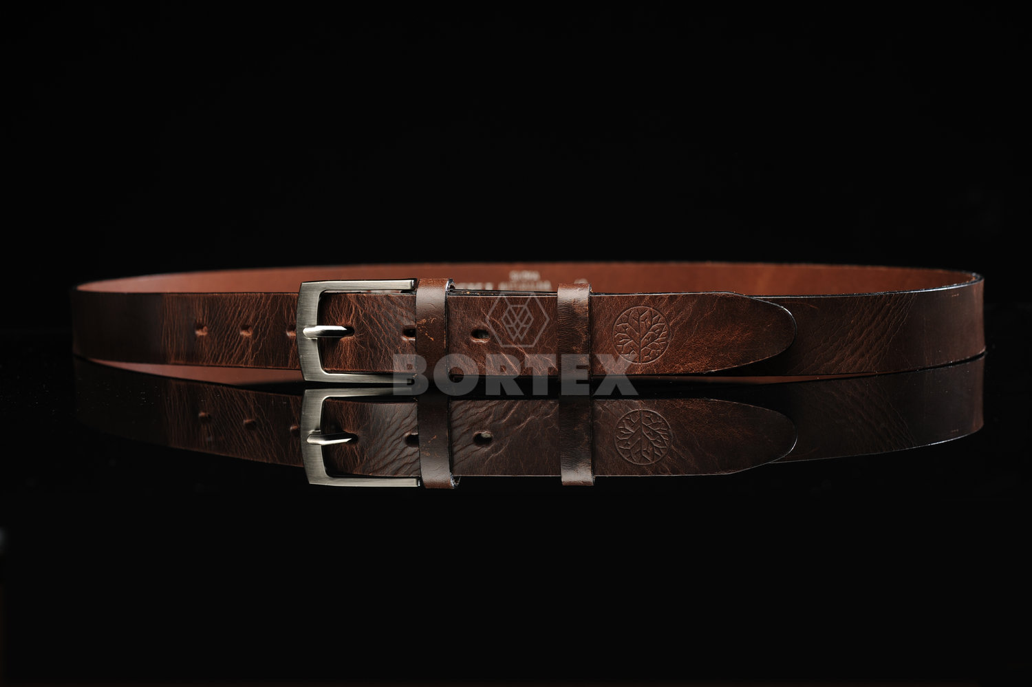 Luxusný kožený opasok, ozdobne prelysovaný, široký 3 cm v hnedej farbe. Opasok je pevný, flexibilný pás z kvalitnej hovädzej kože, vhodný na každodenné nosenie. Je možné nastavovať si dĺžku podľa svojich požiadaviek. Obsahuje kvalitnú kovovú pracku s matnou patinou. Vyrobený z prírodného materiálu.