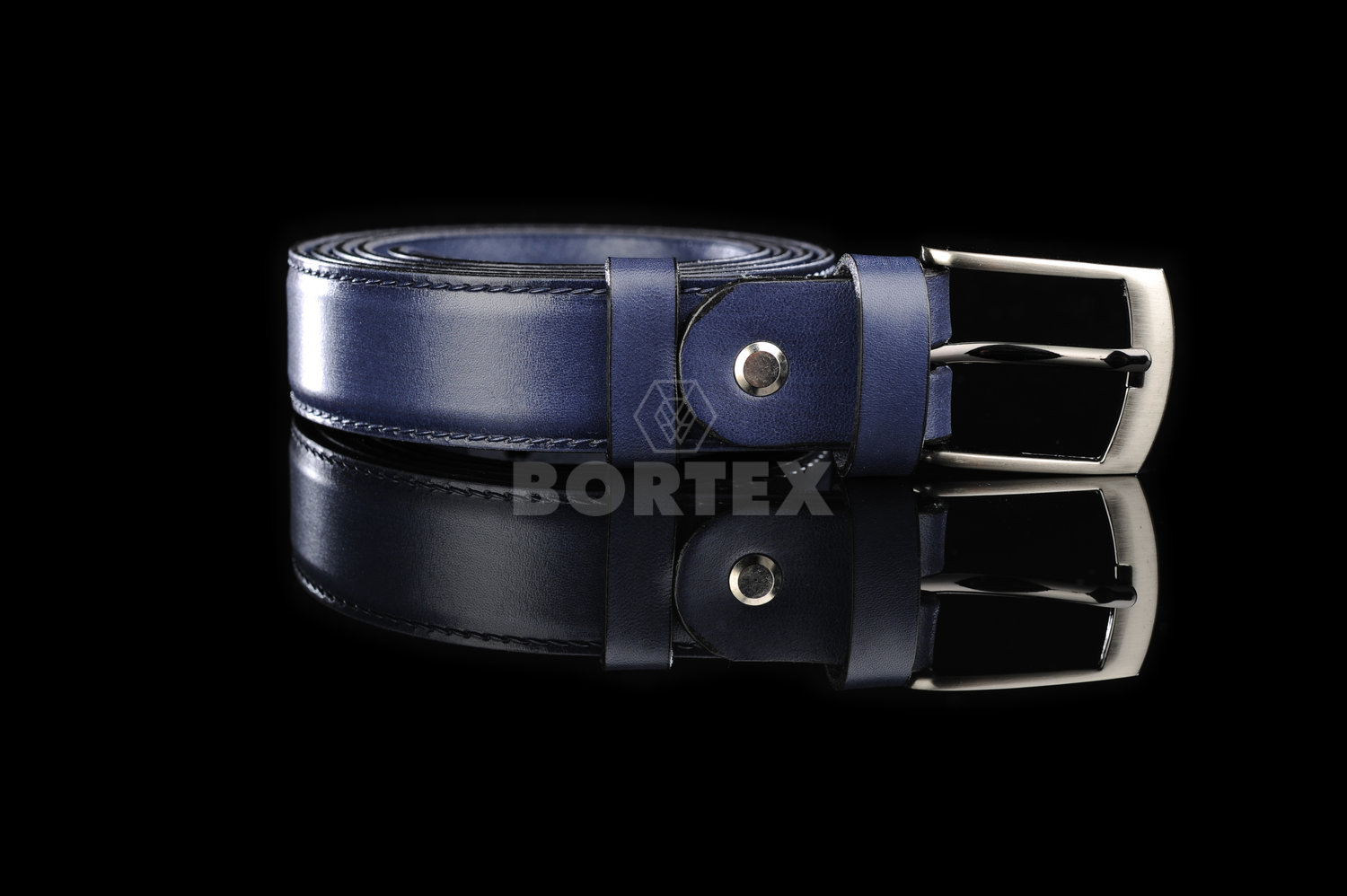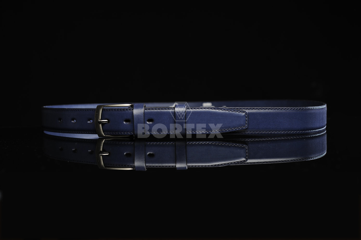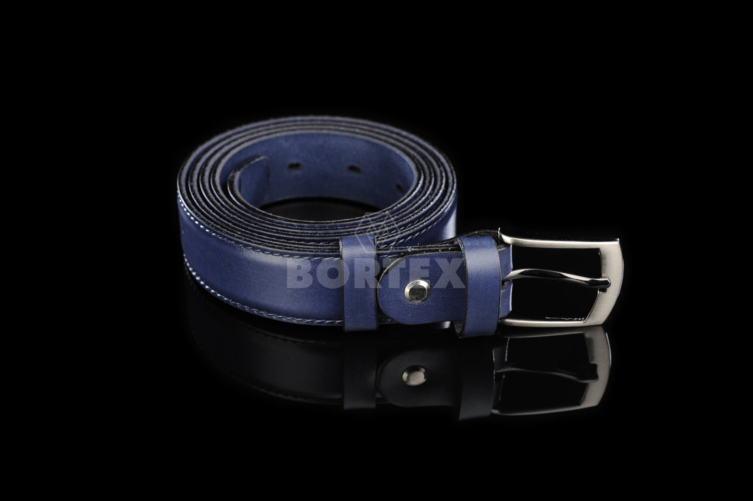 Luxusný kožený opasok, ozdobne prešívaný, široký 3 cm v modrej farbe. Opasok je pevný, flexibilný pás z kvalitnej hovädzej kože, vhodný na každodenné nosenie. Je možné nastavovať si dĺžku podľa svojich požiadaviek. Obsahuje kvalitnú kovovú pracku s matnou patinou. Vyrobený z prírodného materiálu.