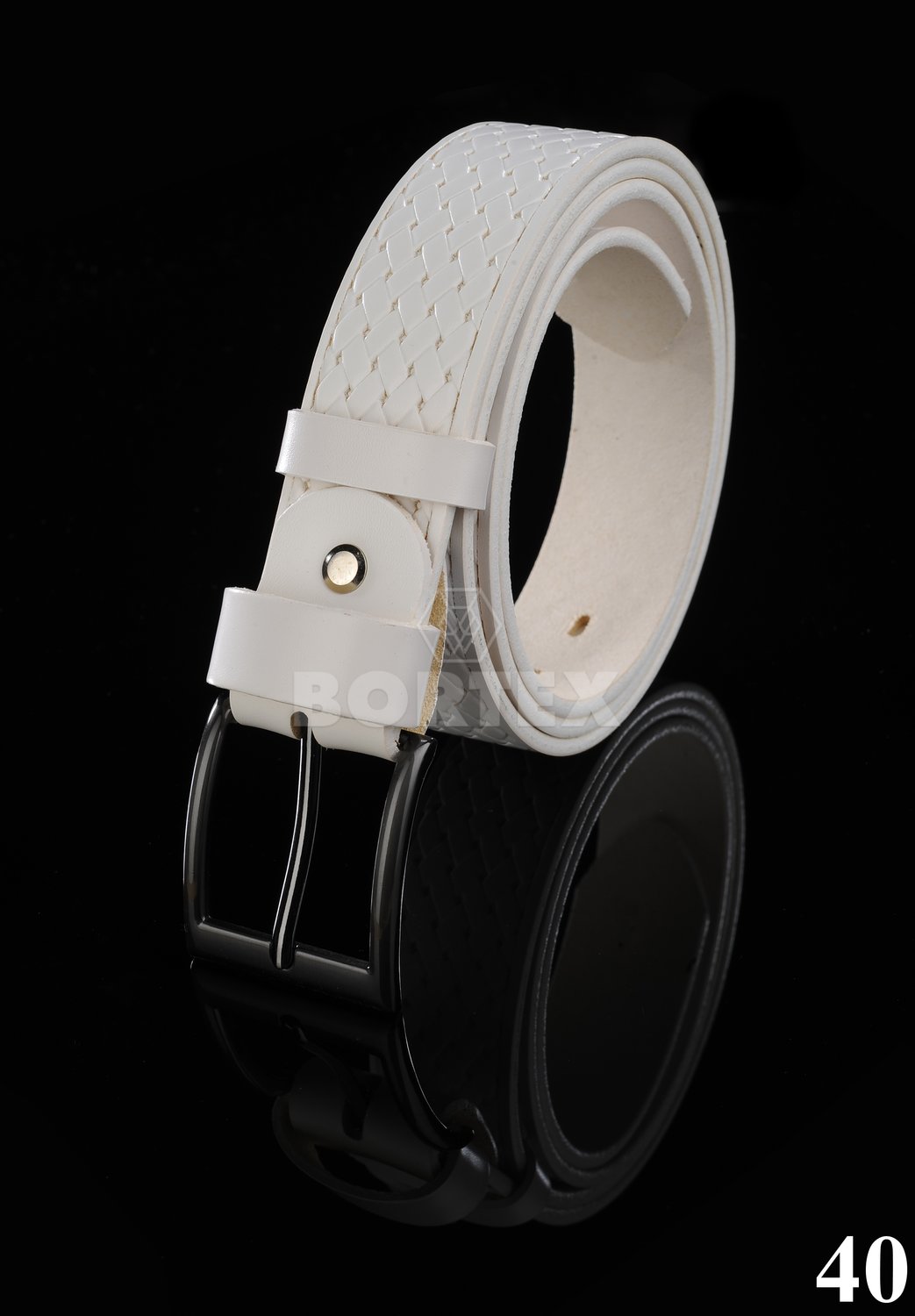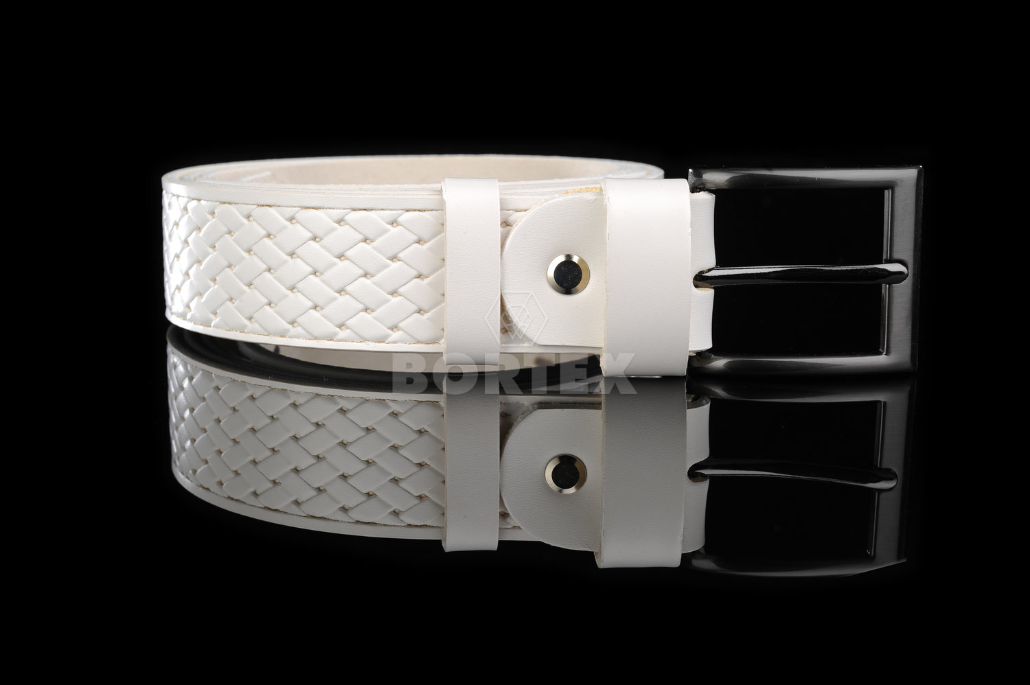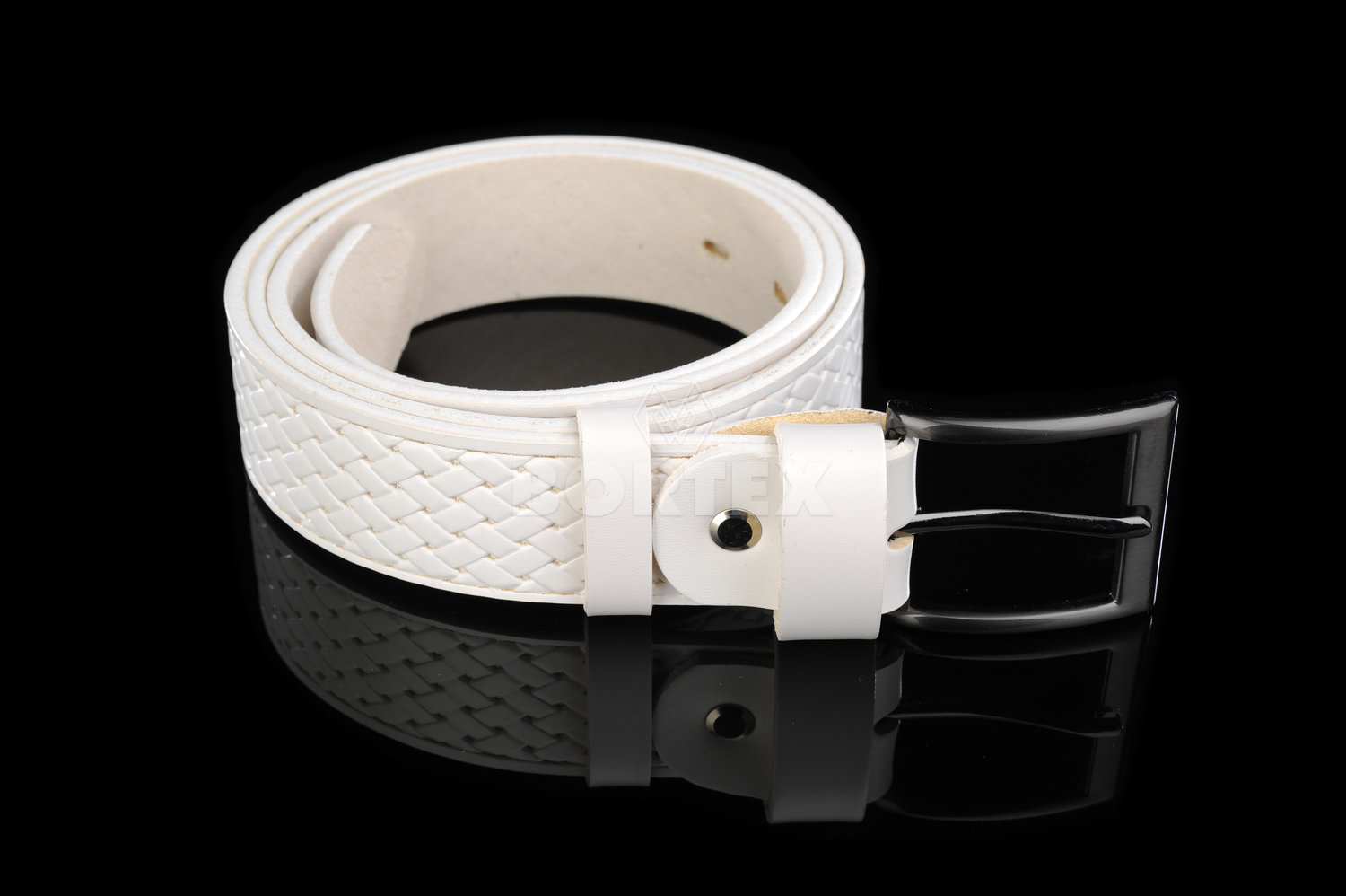 Luxusný kožený opasok, ozdobne prelysovaný, široký 3 cm v bielej farbe. Opasok je pevný, flexibilný pás z kvalitnej hovädzej kože, vhodný na každodenné nosenie. Je možné nastavovať si dĺžku podľa svojich požiadaviek. Obsahuje kvalitnú kovovú pracku s matnou patinou. Vyrobený z prírodného materiálu.