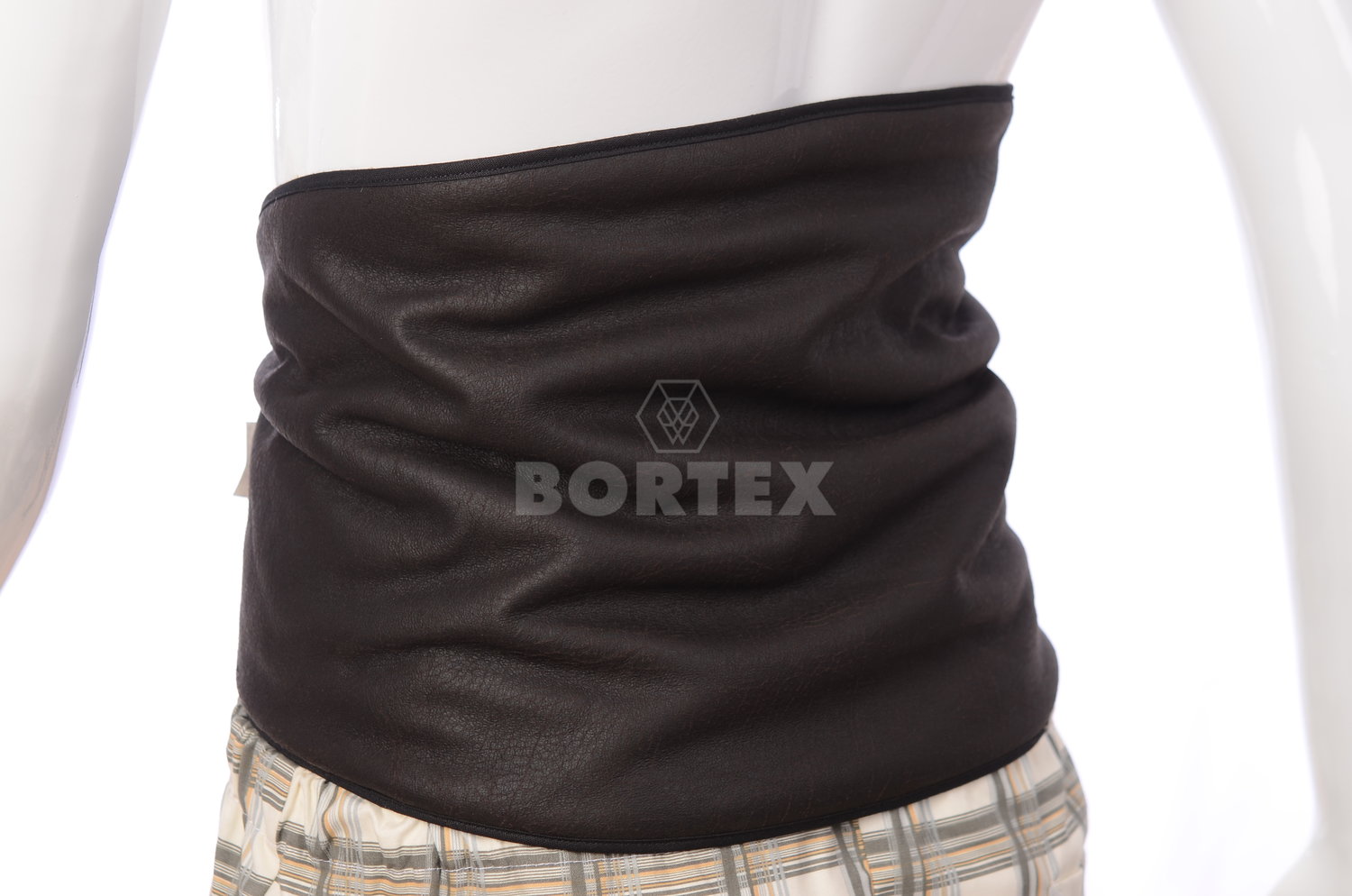 Obličkový pás je ušitý z vrchného materiálu keper (65% Pes, 35% Ba) a podšívky plyš. Na obidvoch koncoch pásu sú všité šnúrky, ktoré slúžia na zaviazanie.