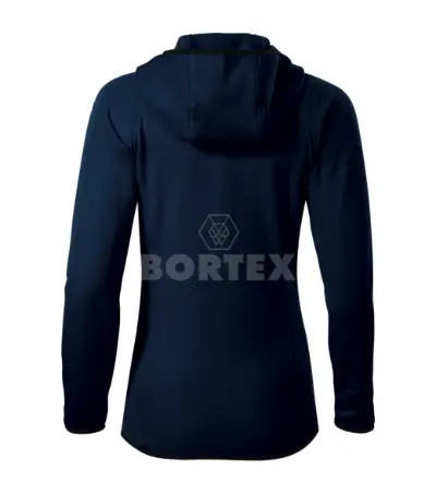 Dámska mikina z hladkého strečového materiálu. Má kapucňu s krytkou brady, raglánové rukávy a páskou začistený vnútorný priekrčník. Má celozapínací reverzný špirálový zips a perfektne sedí vďaka tvarovanému predĺženému zadnému dielu. Rukávy a spodný lem sú ukončené elastickým prúžkom. Praktické sú dve priestorné vrecká na zips a etiketa v podobe odnímateľnej nálepky. Mikina je vyrobená z rýchloschnúceho materiálu, je teda ideálna na šport a pohybové aktivity.