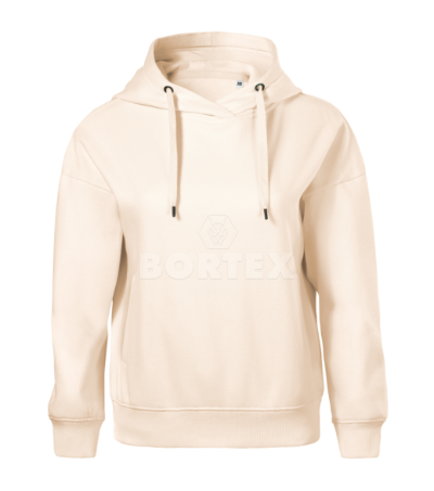Komfortná dámska mikina, ktorá vďaka voľnému strihu s bočnými švami neobmedzuje v pohybe. Kapucňa s podšívkou a sťahovacou šnúrkou dodáva mikine praktický a moderný vzhľad. Mikina má klokankové vrecko na vaše drobnosti. Rukávy, ktoré sú nízko posadené, zdôrazňujú jedinečný dizajn mikiny. Spodný lem a manžety rukávov sú vyrobené z rebrového úpletu z 5% elastanu, ktorý zabezpečuje, že lemy budú držať tvar a nebudú sa rozťahovať. Vnútorná strana je počesaná, takže vám poskytne teplo a pohodlie v každej situácií. Mikinu dodávame v niekoľkých farebných variantoch a je vhodná na bežné nosenie aj na športové aktivity.