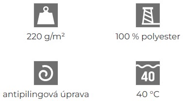 Detská fleecová mikina s kontrastnými vsadkami a detailmi. Mikina je vyrobená z hrejivého materialu. Na prednej časti mikiny sú dve vrecká na zips. Stojačik zakončený krytkou pre ochranu brady. Spodný lem na stiahnutie elastickou šnúrkou. Dekoratívne prešitie. Má antipílingovú úpravu vonkajšej strany materiálu, takže dlhšie vydrží bez žmolkov a známok opotrebovania. Gramáž 220 g/m2.