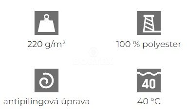 Pánska celozapínacia fleecová mikina s kontrastnými vsadkami a detailmi, vyrobená z hrejivého materiálu. Mikina má antipilingovú úpravu z vonkajšej strany, materiál teda dlhšie vydrží bez žmolkov a známok opotrebenia. Má dve predné vrecká so špirálovým zipsom. Praktický stojačik s krytkou na ochranu brady, dekoratívne prešitie. Spodný lem na stiahnutie elastickou šnúrkou. Vďaka nižšej gramáži je mikina poddajná, na dotyk jemná. Gramáž 220 g/m2.