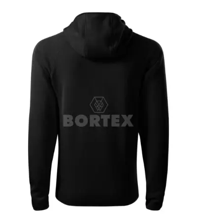 Moderný rovný strih s bočnými dielmi a raglánové rukávy. Mikina má kapucňu s krytkou brady a zapínanie na celozapínací reverzný špirálový zips. Má dve vrecká na zips, vnútorný priekrčník začistený páskou a etiketu v podobe odnímateľnej nálepky. Na pohodlné nosenie sú konce rukávov i spodný okraj mikiny lemované elastickým prúžkom.
