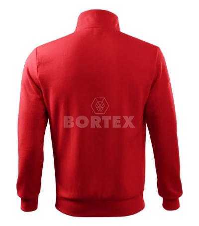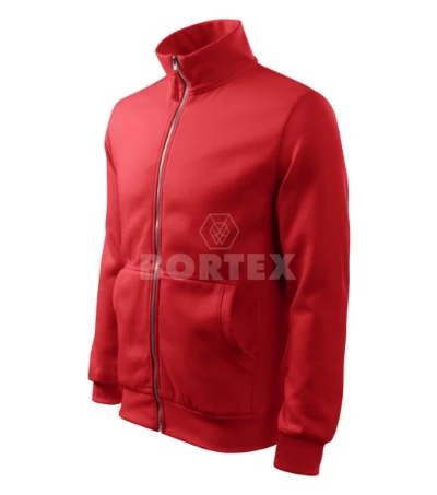 Pánska mikina je rovného strihu s bočnými dielmi. Mikina je s límcom a kovovým zipsom, zapína sa až ku krku a má dve predné nakladané vrecká v štýle klokanky. Golier, bočné diely, spodný lem, manžety rukávov a lem vreciek sú z rebrového úpletu.