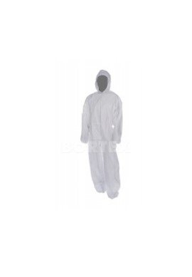 Ochranný odev navrhnutý na ochranu pred časticami, vláknami a tekutinami. Pohodlné stiahnutie na rukávoch a nohách a zips vpredu.Polyetylénová vrstva-nepremokavý.