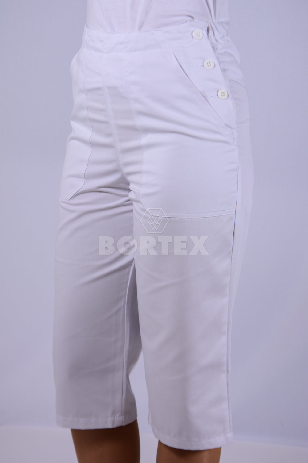 Pracovné nohavice sú 3/4 a voľného strihu, so zapínaním z boku na gombíky. Zo zadnej strany pracovných nohavíc je všitá guma. Súčasťou nohavíc sú dve predné vrecká.