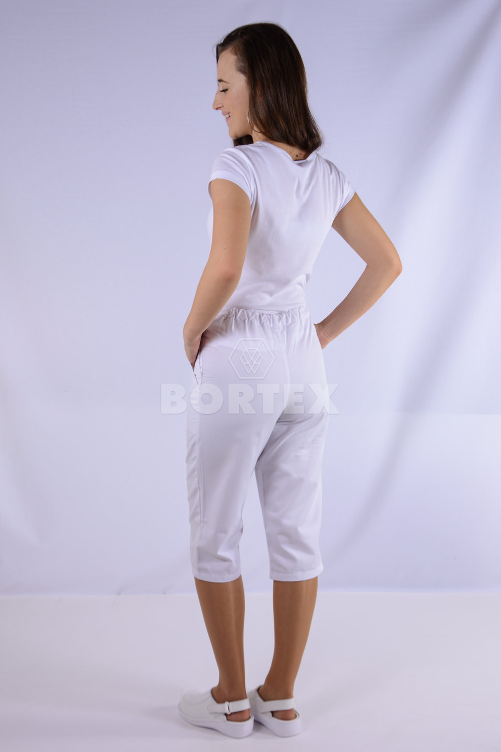 Nohavice biele 3/4 na gumu - dámske (zmesový materiál) VYROBENÉ NA SLOVENSKU