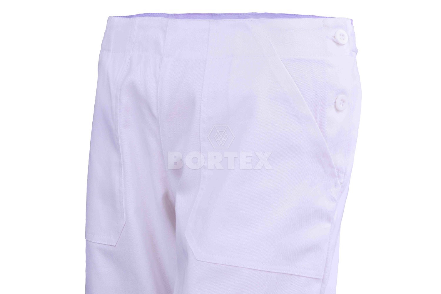 Pracovné nohavice sú 3/4 a voľného strihu, so zapínaním z boku na gombíky. Zo zadnej strany pracovných nohavíc sa nachádza pracka na gombík, na úpravu šírky pásu. Súčasťou nohavíc sú dve predné vrecká.