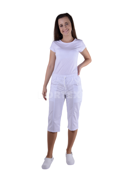 Nohavice biele  Klara 3/4 na gumu - dámske (100% bavlna)