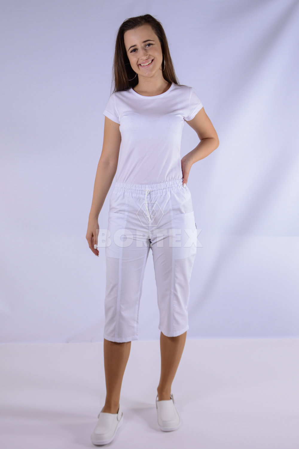 Nohavice biele Klara 3/4 na gumu - dámske (zmesový materiál) VYROBENÉ NA SLOVENSKU