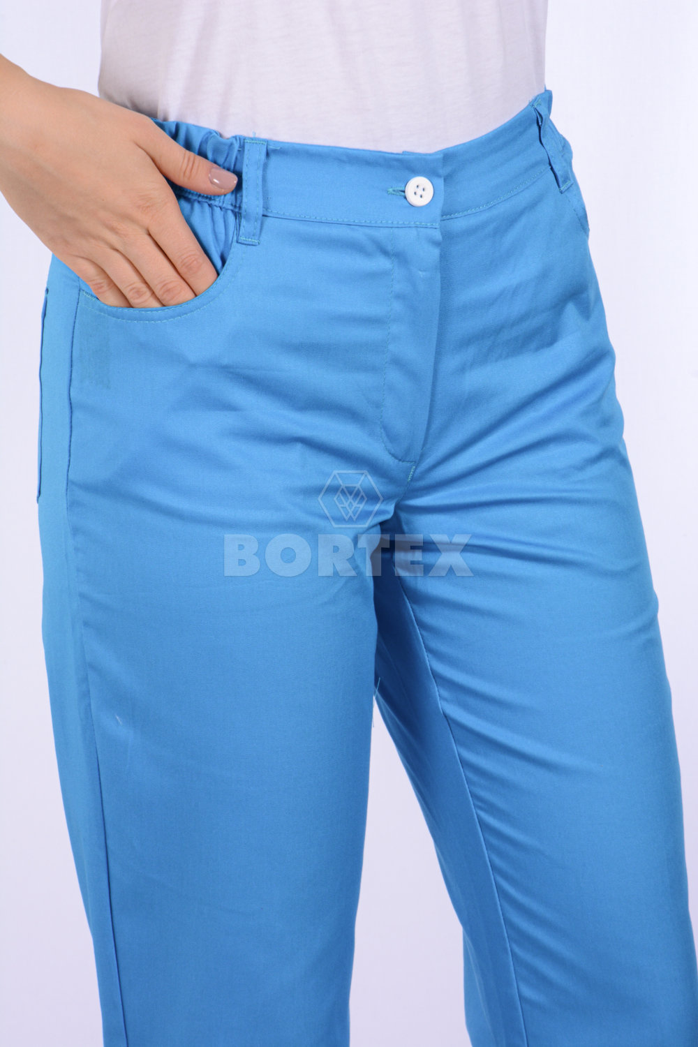 Nohavice MIRA na pevný pás - všitá guma - tyrkysové