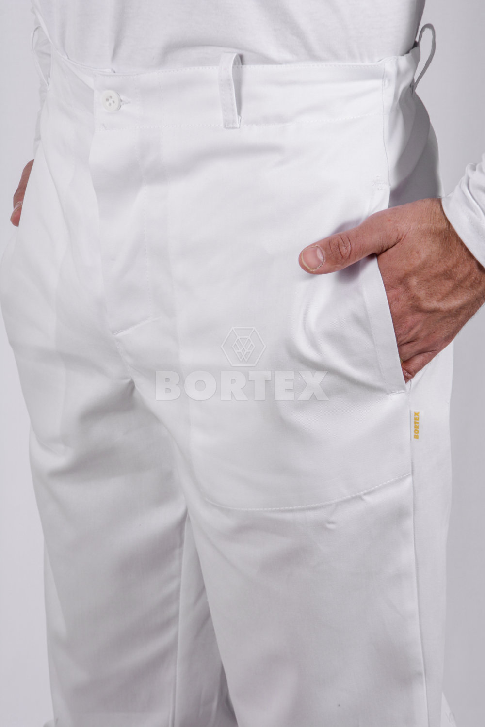 Pracovné nohavice v bielej farbe sú vyrobené z kvalitného na dotyk príjemného materiálu - 65% polyester, 35% bavlna. Sú pohodlné, ľahké a vzdušné.