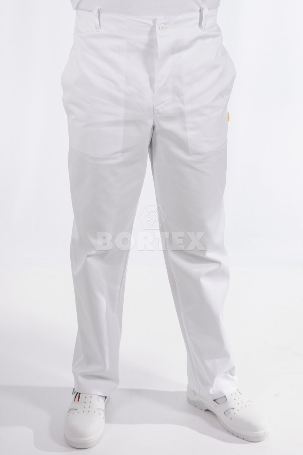 Pracovné nohavice v bielej farbe sú vyrobené z kvalitného na dotyk príjemného materiálu - 65% polyester, 35% bavlna.