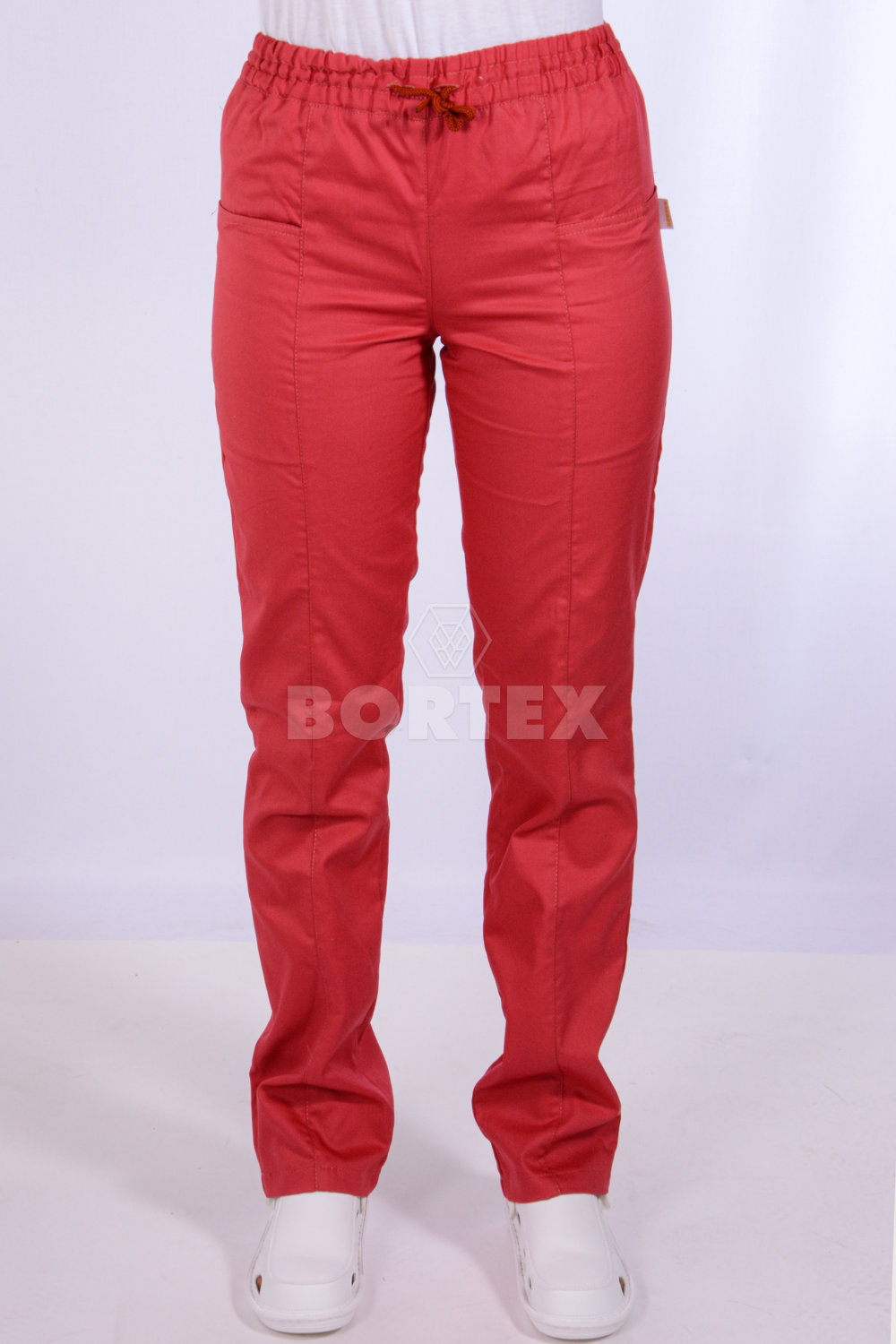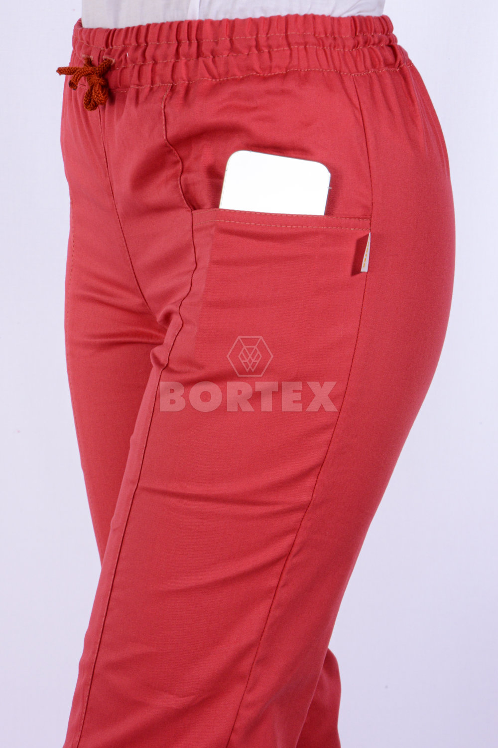 Pracovné nohavice KLARA sú voľného strihu. Pás je stiahnutý gumou s možnosťou stiahnutia šnúrkou. Súčasťou nohavíc sú dve vrecká z prednej časti nohavíc.