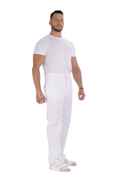 Nohavice na pevný pás biele (zmesový materiál) - pánske