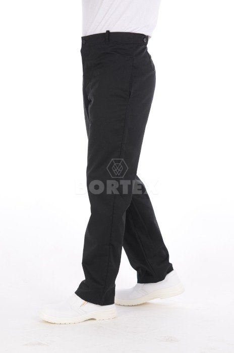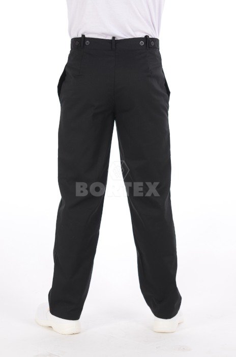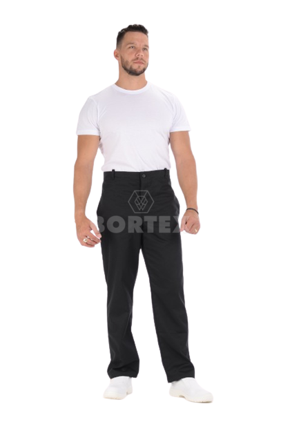 Pracovné nohavice sú voľného strihu. V páse sa nachádzajú pútka na opasok. Zo zadnej strany pracovných nohavíc sa nachádza pracka na gombík, na úpravu šírky pásu. Zapínanie je na zips a gombík. Súčasťou nohavíc sú dve vrecká z prednej časti.