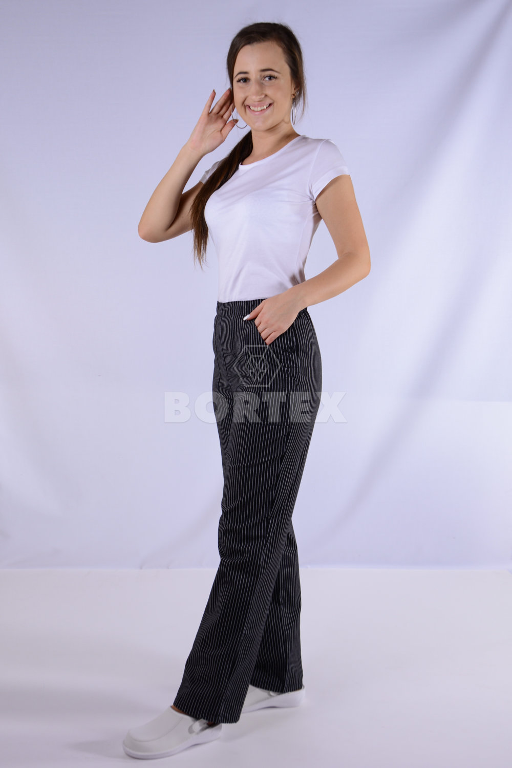 Pracovné nohavice sú voľného strihu so zapínaním na gombíky. Zapínanie sa nachádza na boku pracovných nohavíc. Zo zadnej strany nohavíc je všitá guma. Súčasťou nohavíc sú dve vrecká z prednej časti.