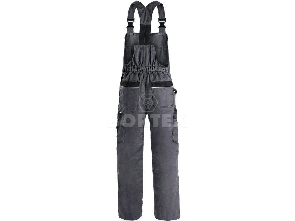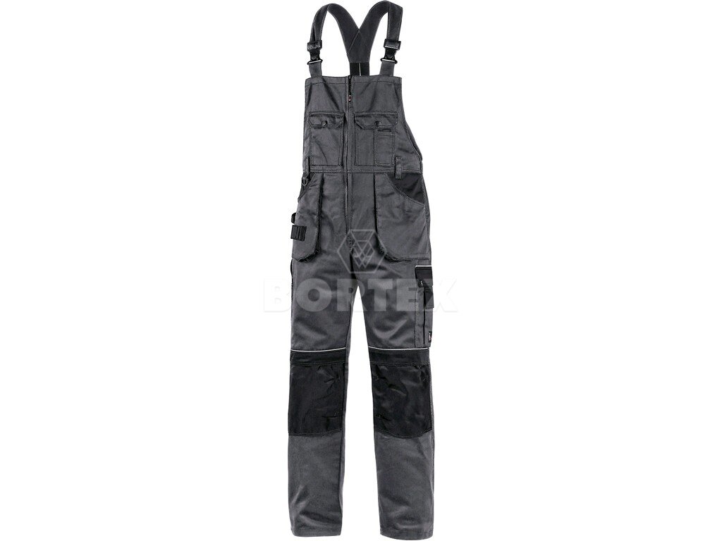 Pánske pracovné nohavice s náprsenkou na zips s možnosťou vloženia kolenných výstuh, vyrobené z materiálu 60% bavlna, 40% polyester. Náprsné vrecká s príklopkami, pás v zadnej časti do gumy, kolená vystužené 600D polyesterom, predné vrecká s pútkami na náradie, multifunčné bočné vrecká a reflexné doplnky. Zips po celej dĺžke predného dielu.