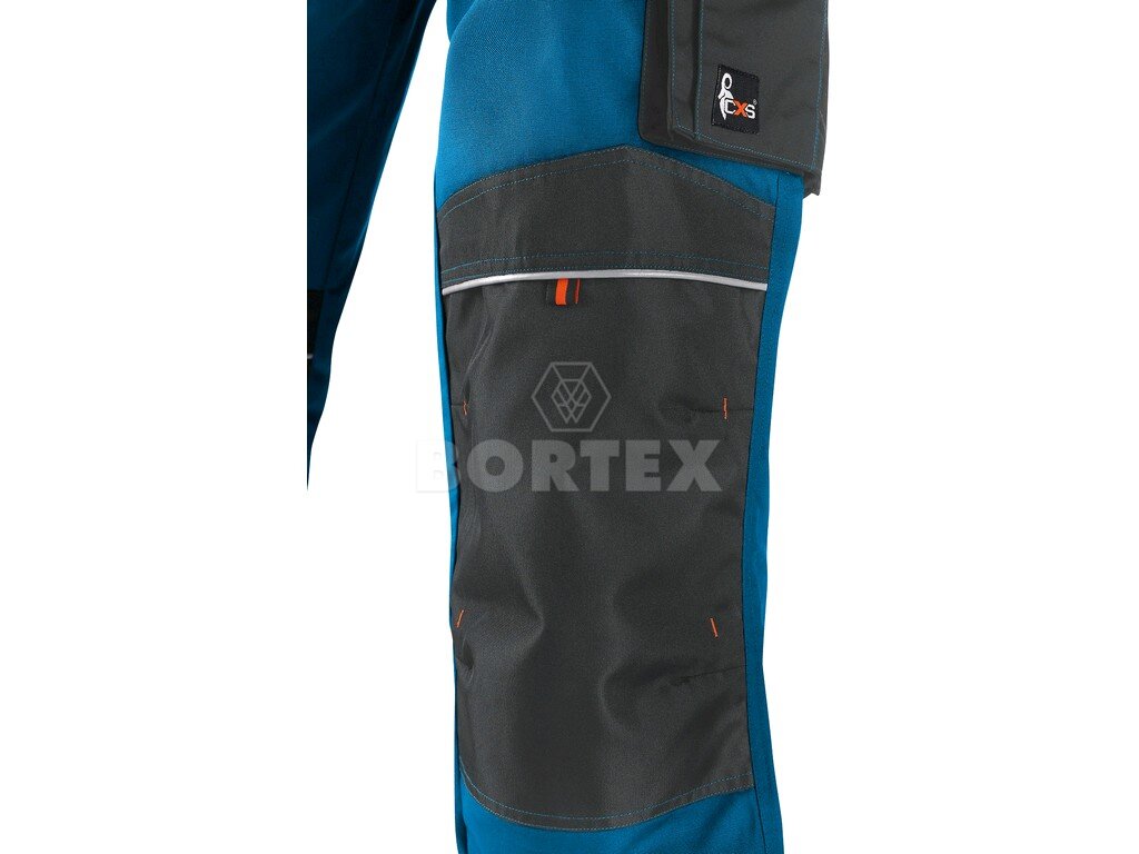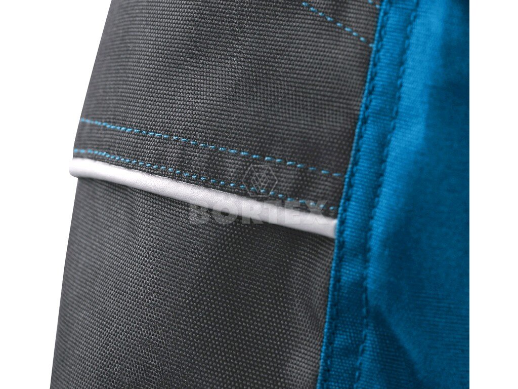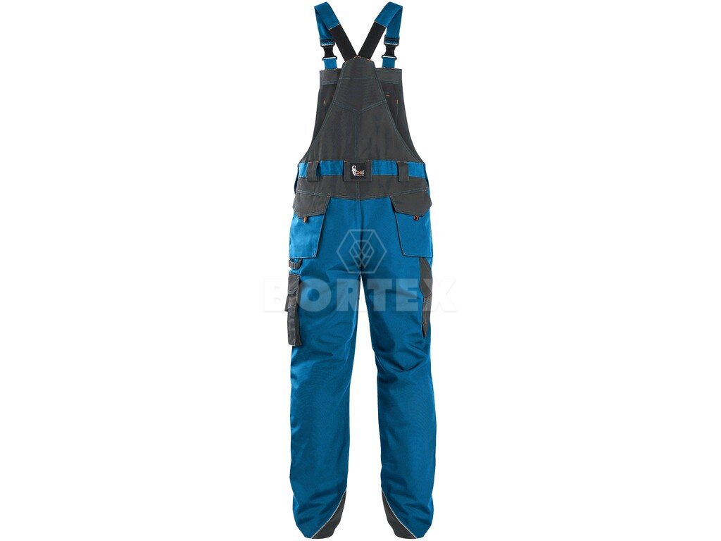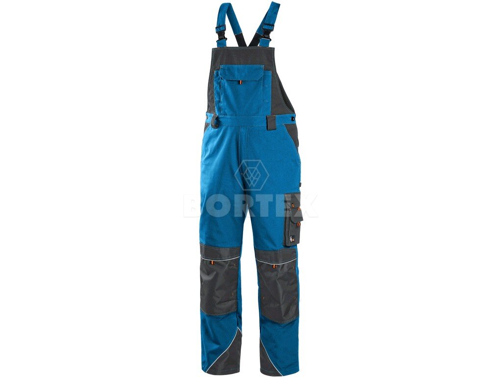 Pánske pracovné nohavice s náprsenkou majú pevný pás s pútkami na opasok a celý rad vreciek: zadné s príklopkami, predné klinové, bočné multifunkčné a na náprsenke. Kolená sú zosilnené a dajú sa do nich vložiť kolenné výstuhy. Sú vyrobené zo 65% polyesteru a 35% bavlny s gramážou 270 g/m2. Spodná časť nohavíc je vystužená materiálom 600D polyester. Sú vyrobené z kvalitného materiálu, ktorý zaručuje vysokú pevnosť a odolnosť.