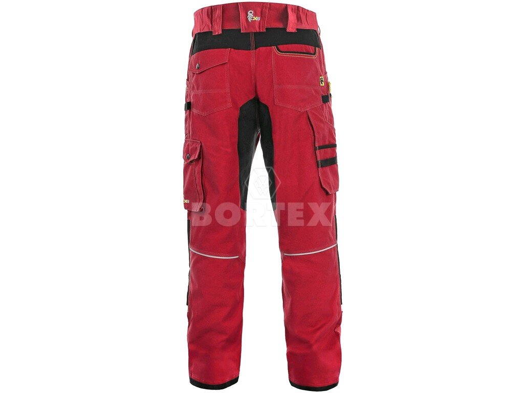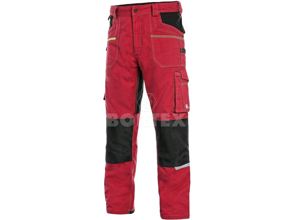 Nohavice pánske na pevný pás CXS STRETCH - červeno-čierne