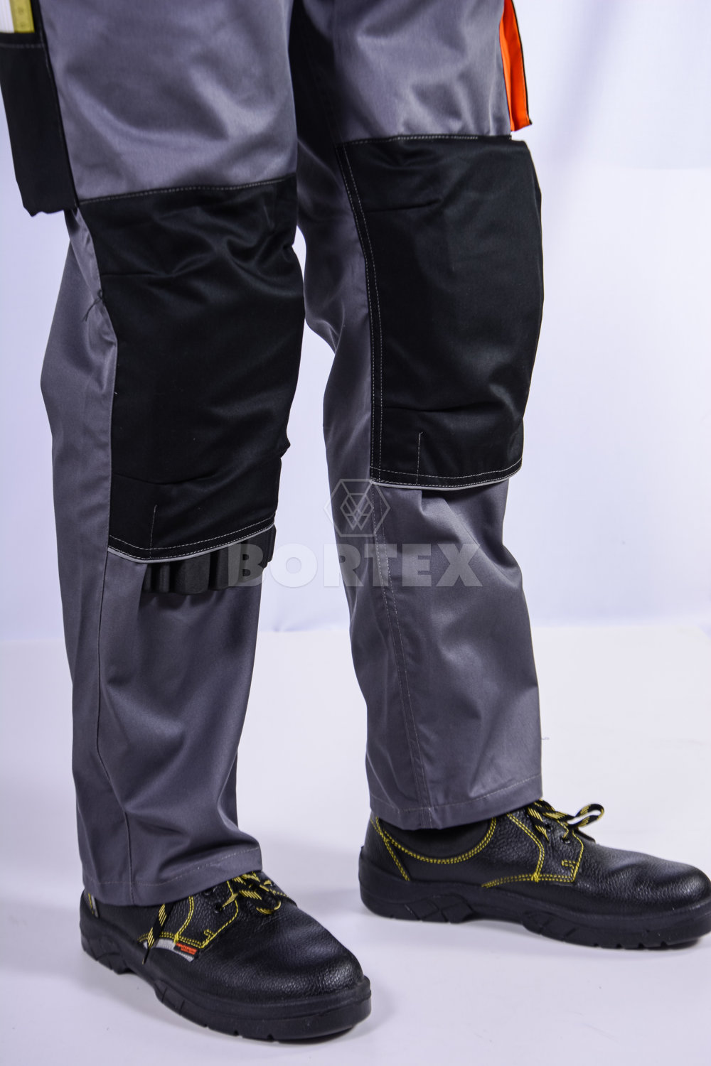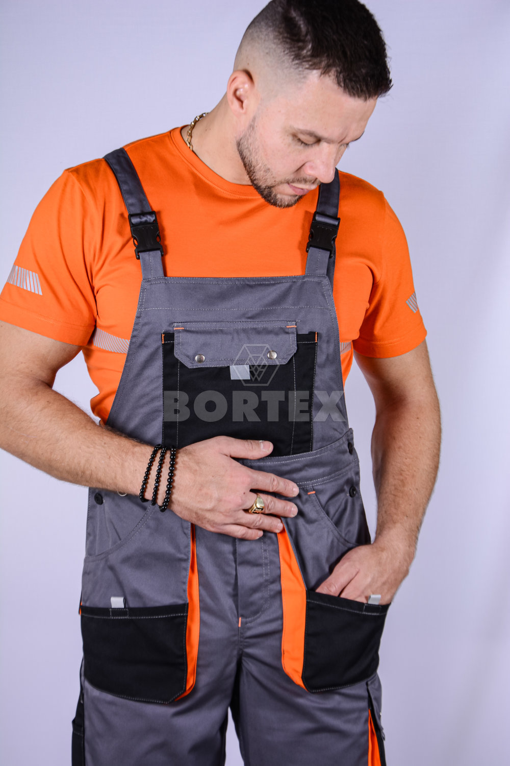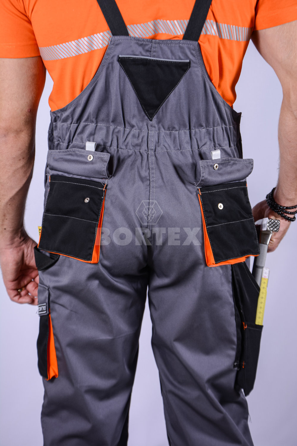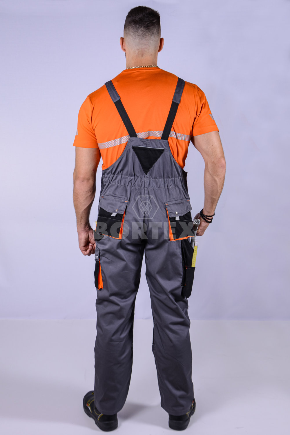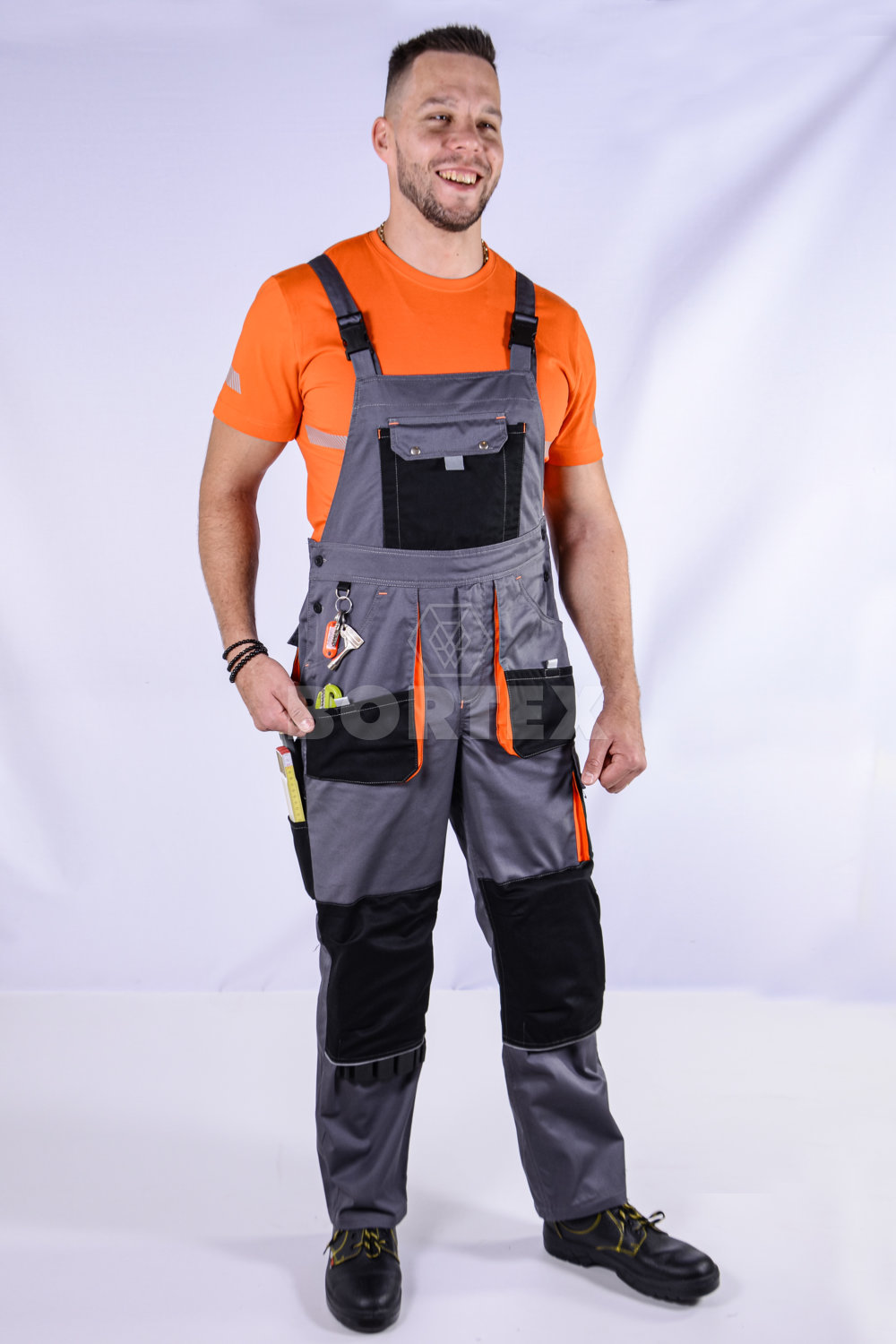 Nohavice pánske pracovné, na traky, model SAMO, sivo-oranžové