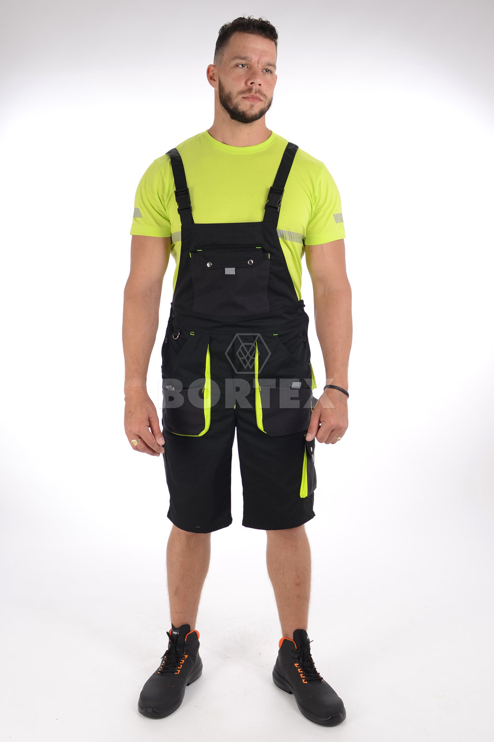 Nohavice pánske pracovné, na traky - krátke, model SAMO, čierno-žlté