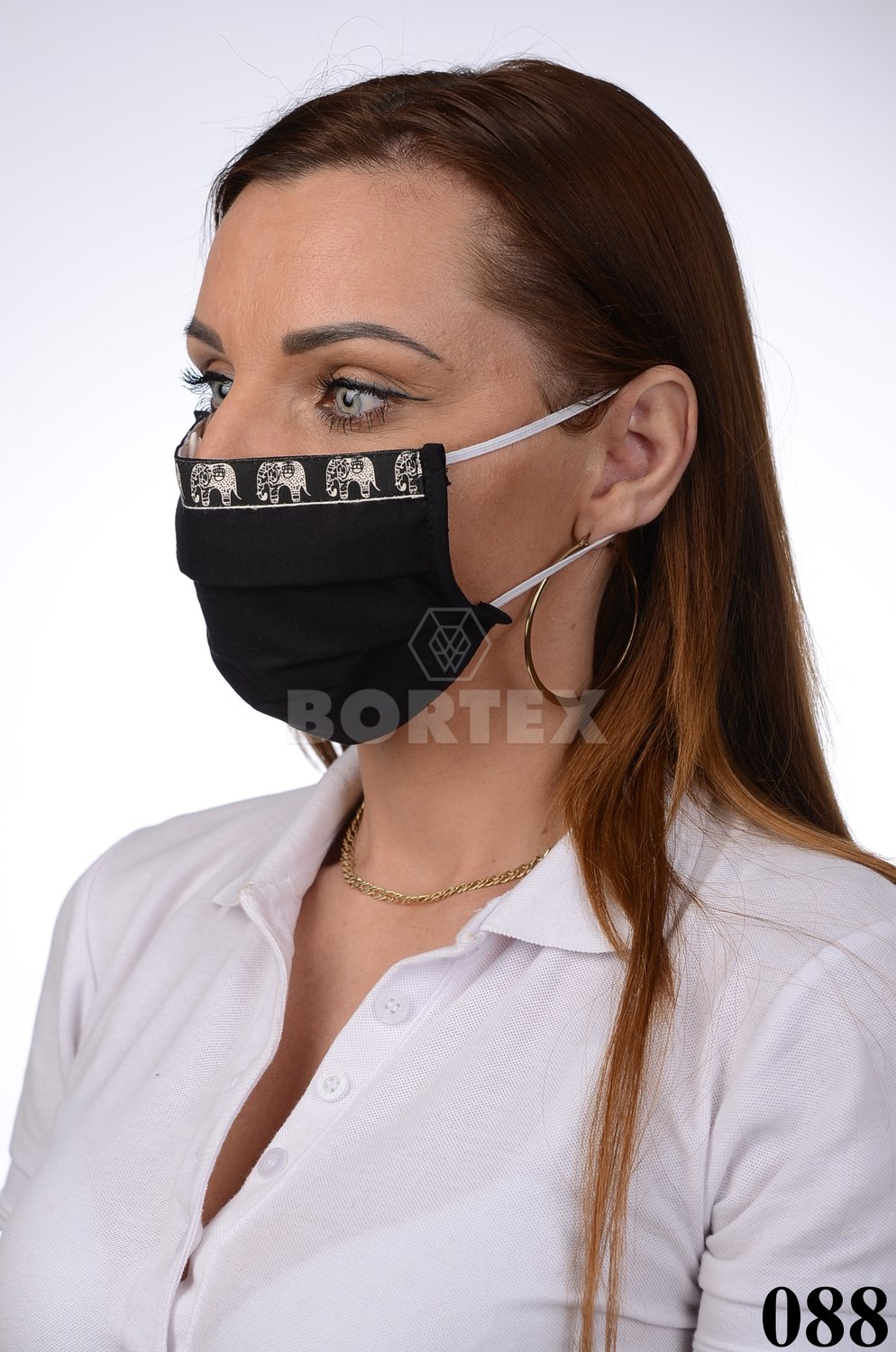 Ochranné rúško antibakteriálne B03-BORT. slovenský výrobok, dvojvrstvové-1.vrstva(100%bavlna), 2.vrstva (100%polyester s iónmi striebra) - ozdobné rúško motív slony (čierne) 088
