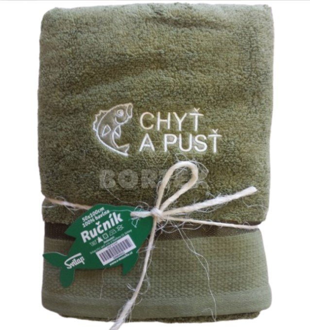 Osuška je ušitá z kvalitnej mikrobavlny SLEEP WELL® v khaki prevedení, doplnená svetlou výšivkou chyť a pusť.