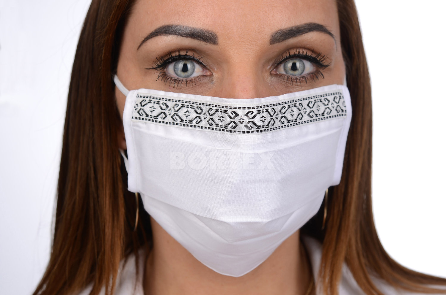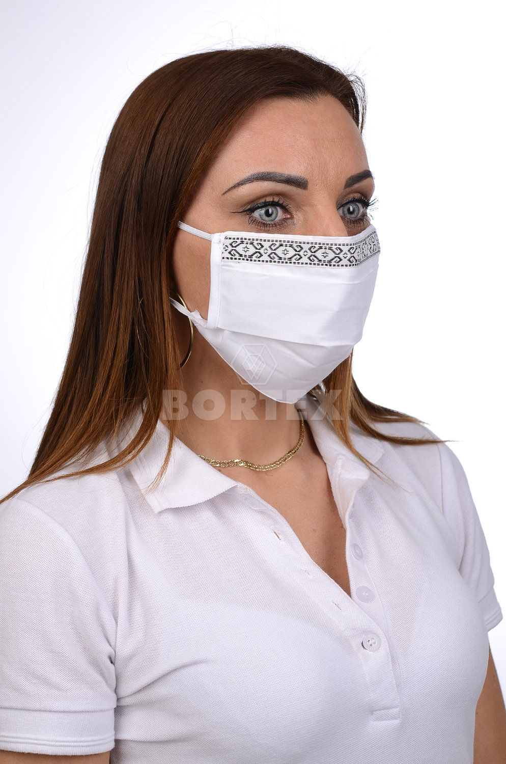 Ozdobné rúško bavlnené na tvár B03-BORT (dvojvrstvové-100% bavlna)-ľudový motív (biele)