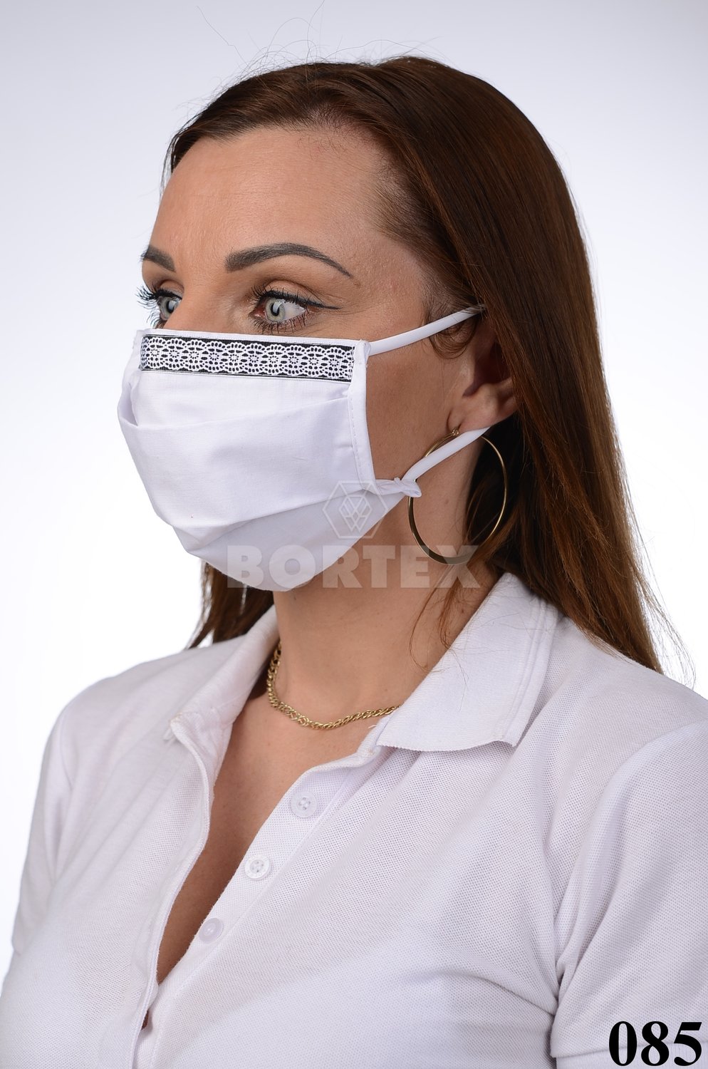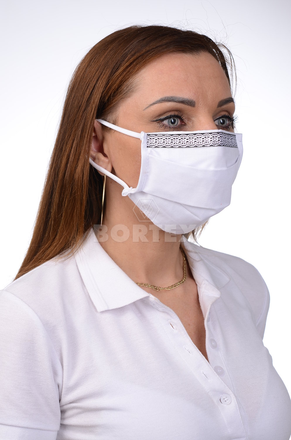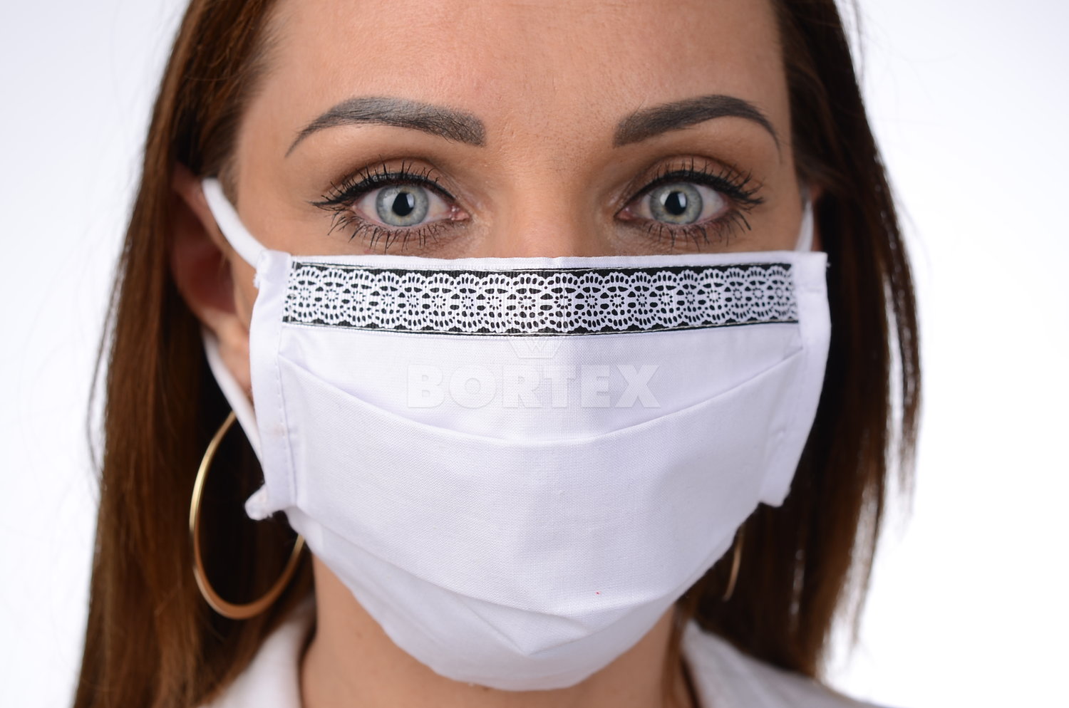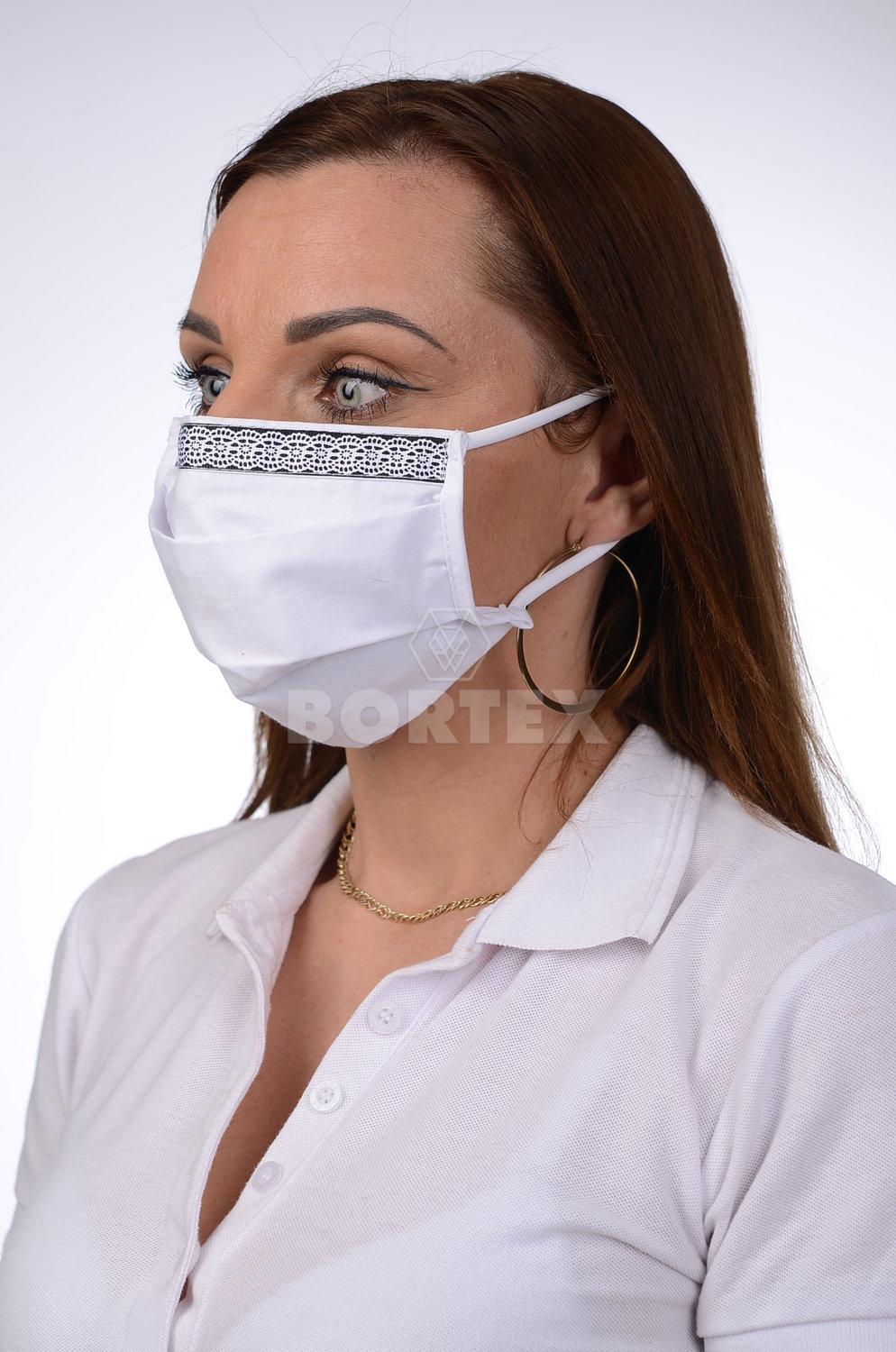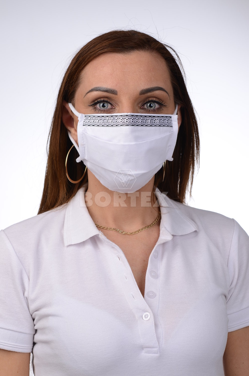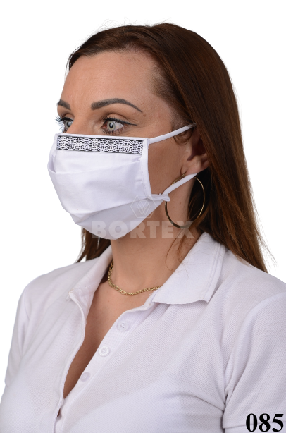 Ozdobné rúško bavlnené na tvár B03-BORT (dvojvrstvové-100% bavlna) motív čipka (biele)