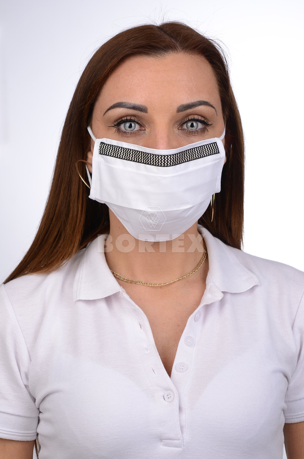 Ozdobné rúško bavlnené na tvár B03-BORT (dvojvrstvové-100% bavlna) motív vlnky (biele)